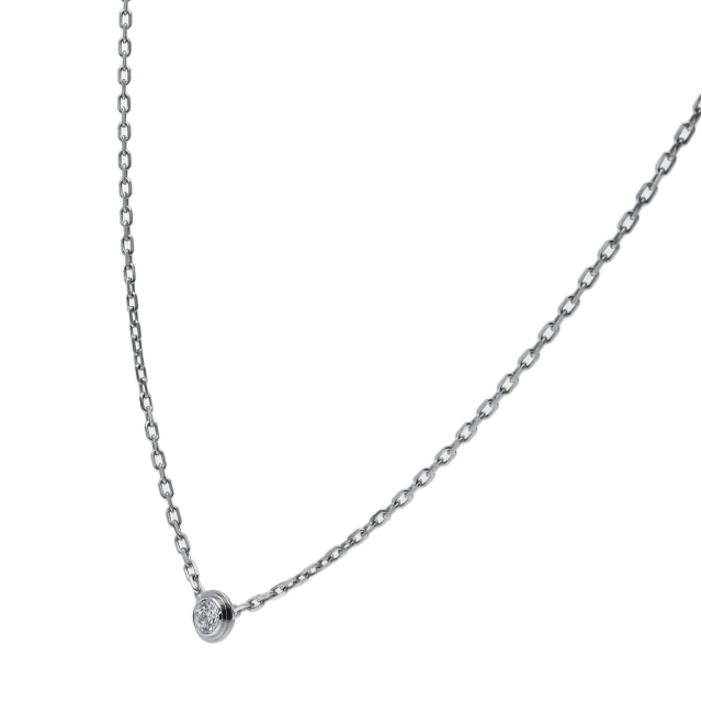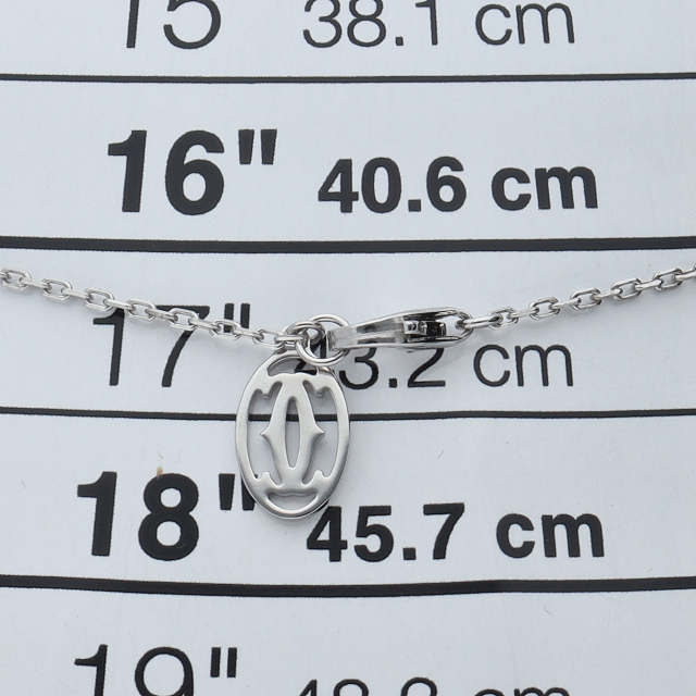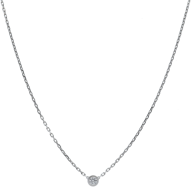 USED品。ホワイトゴールド製。世界中のセレブに愛される、カルティエのアイテム。現在は『ダムール ネックレス』に名称を変えております。ワンポイントでデザインされたダイヤが、エレガントな存在感を発揮します。