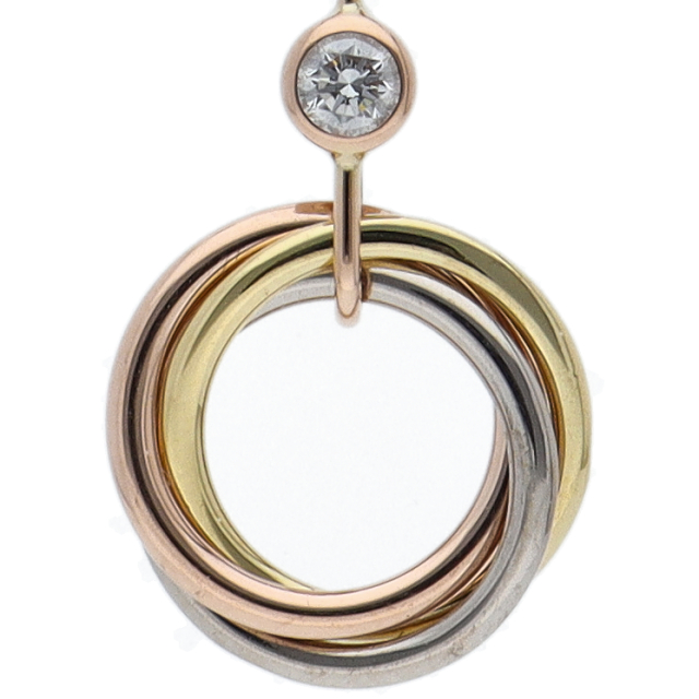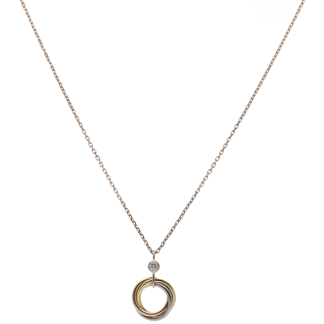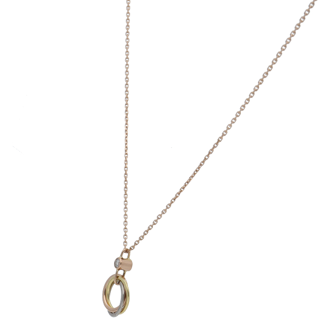 USED品。3カラー製。イエロー、ホワイト、ピンクの3色のゴールドが合わさった、シンプルなデザインで、カルティエらしい派手すぎない上品な逸品です。胸元のボールの位置をお好きな長さにアレンジできます。