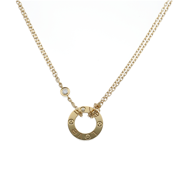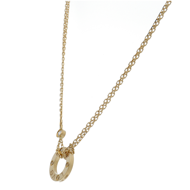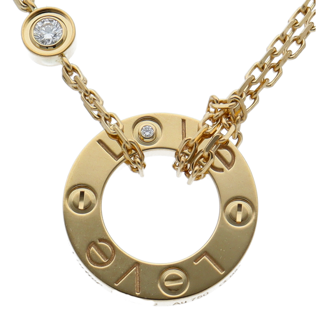 USED品。イエローゴールド製。自由な愛とその絆を象徴するビスモチーフが特徴で、「永遠の愛」の象徴として作られたカルティエの人気のラブコレクションです。