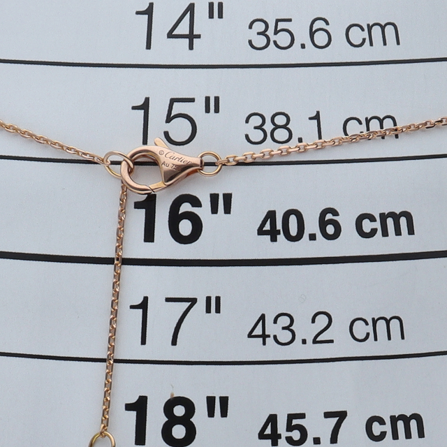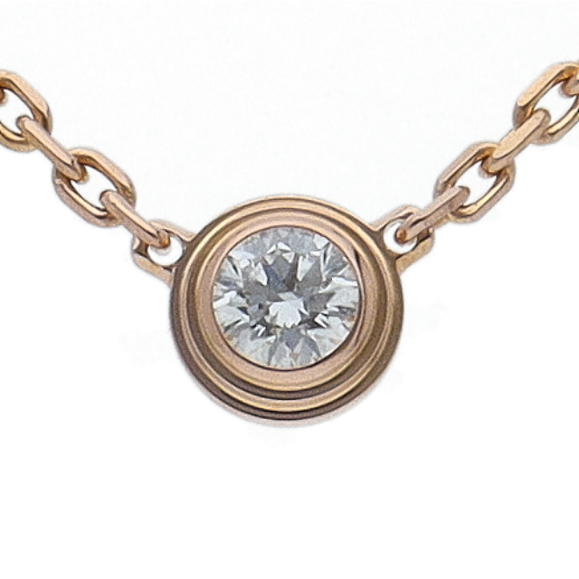 USED品。ピンクゴールド製。世界中のセレブに愛される、カルティエのアイテム。現在は『ダムール ネックレス』に名称を変えております。ワンポイントでデザインされたダイヤが、エレガントな存在感を発揮します。