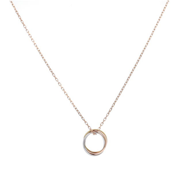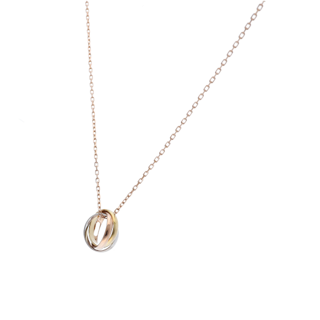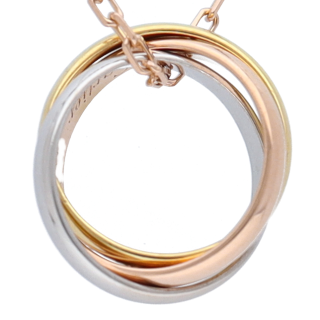 USED品。3カラー製。ピンクが愛、イエローが忠誠、ホワイトが友情を象徴するカルティエの人気のトリニティコレクションです。