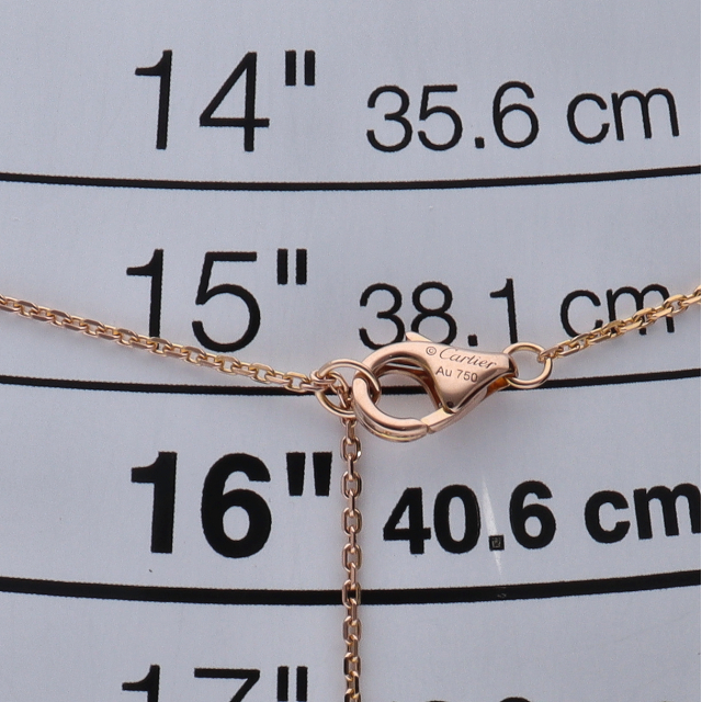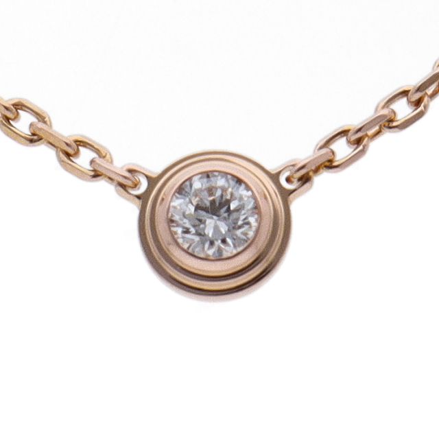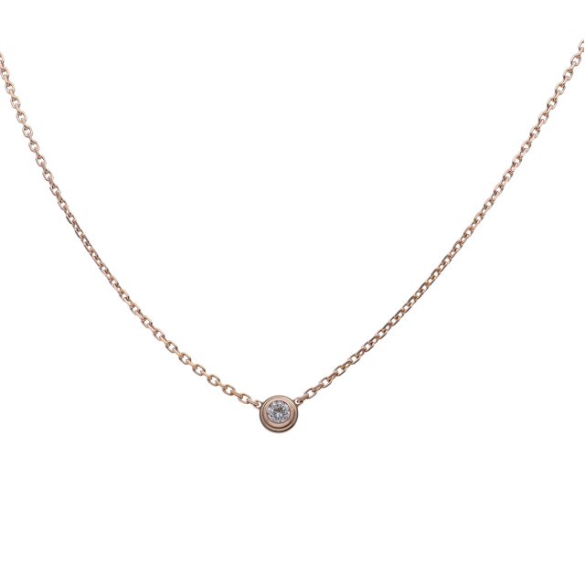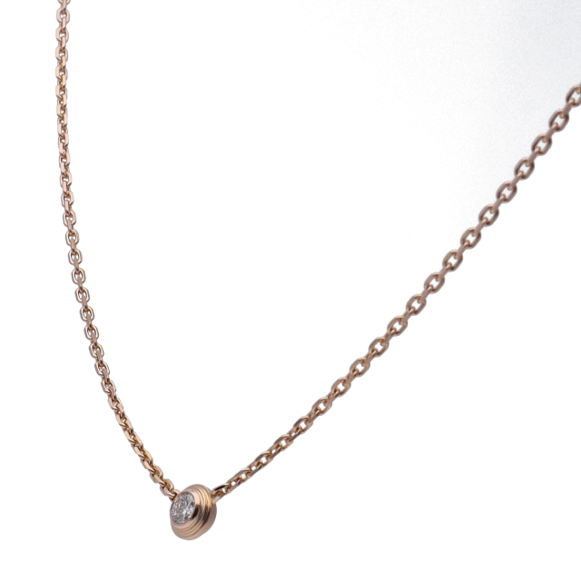 USED品。ピンクゴールド製。世界中のセレブに愛される、カルティエのアイテム。現在は『ダムール ネックレス』に名称を変えております。ワンポイントでデザインされたダイヤが、エレガントな存在感を発揮します。