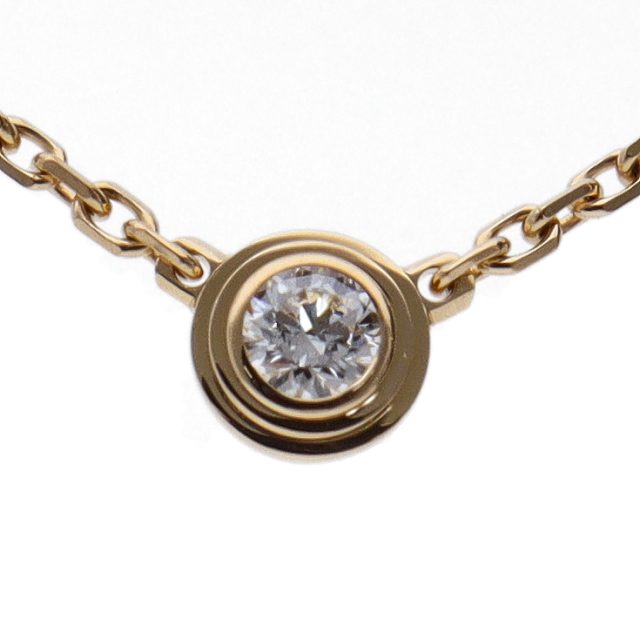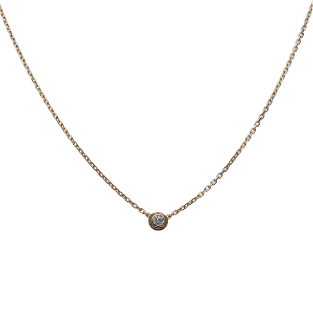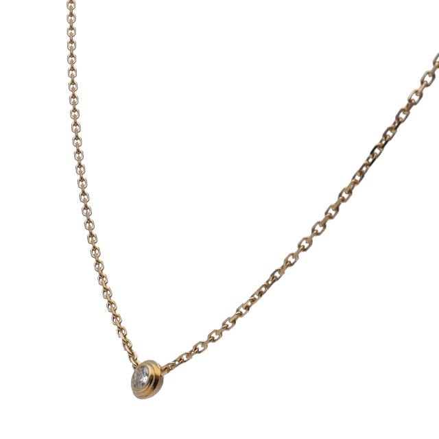 USED品。イエローゴールド製。世界中のセレブに愛される、カルティエのアイテム。現在は『ダムール ネックレス』に名称を変えております。ワンポイントでデザインされたダイヤが、エレガントな存在感を発揮します。