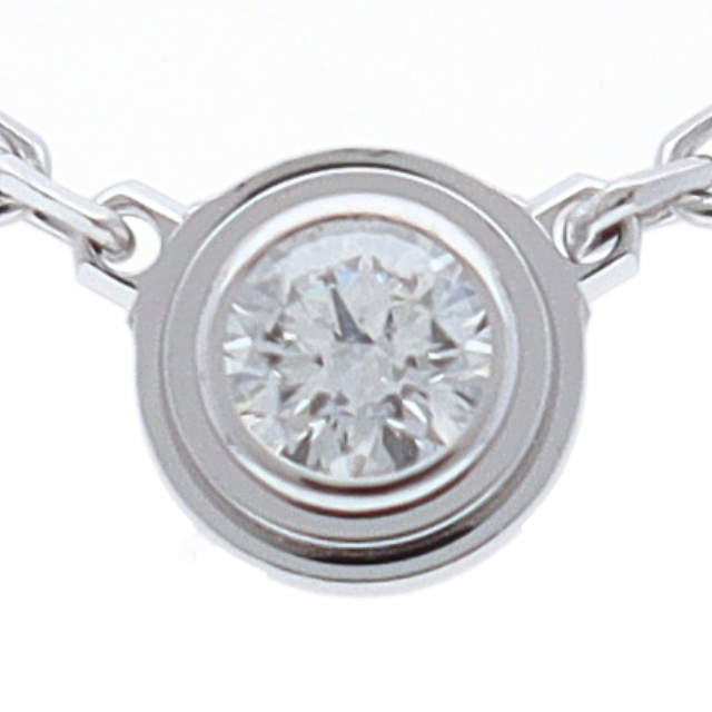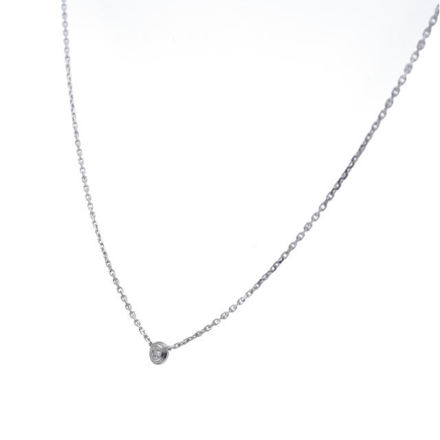 USED品。ホワイトゴールド製。世界中のセレブに愛される、カルティエのアイテム。現在は『ダムール ネックレス』に名称を変えております。ワンポイントでデザインされたダイヤが、エレガントな存在感を発揮します。