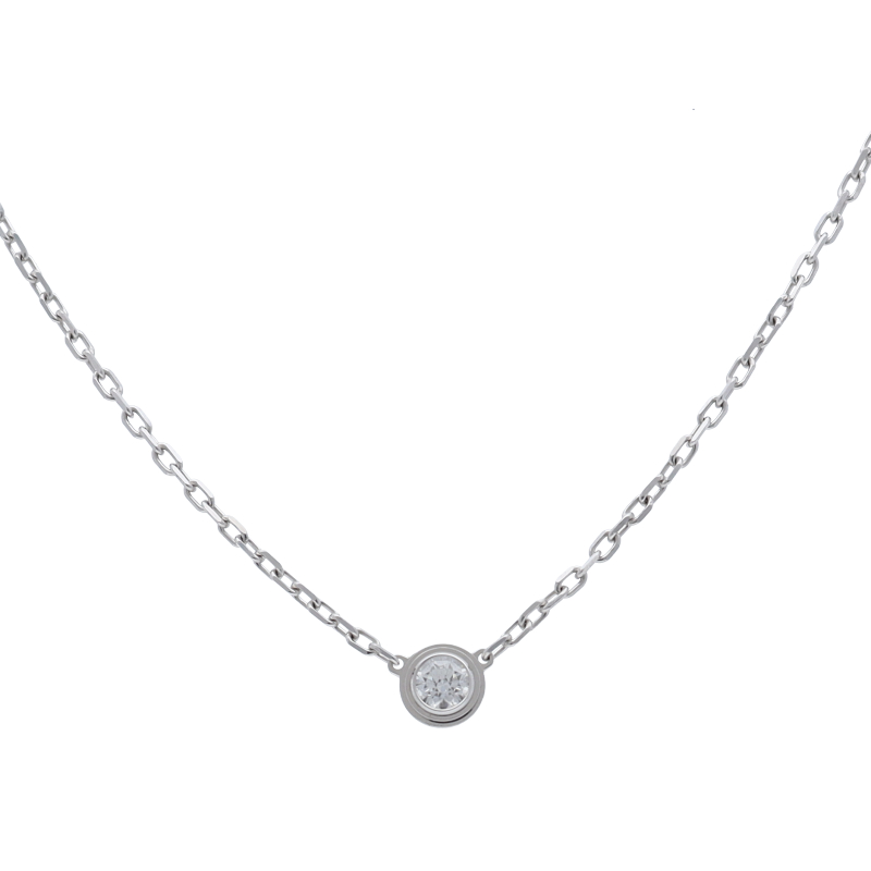 USED品。ホワイトゴールド製。世界中のセレブに愛される、カルティエのアイテム。現在は『ダムール ネックレス』に名称を変えております。ワンポイントでデザインされたダイヤが、エレガントな存在感を発揮します。