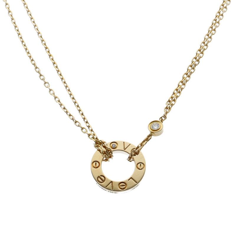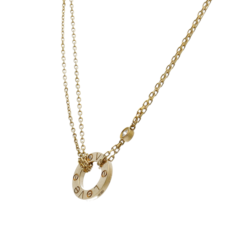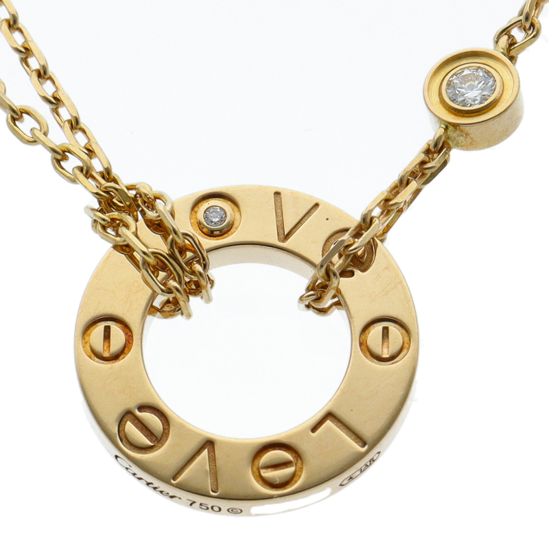 USED品。イエローゴールド製。自由な愛とその絆を象徴するビスモチーフが特徴で、「永遠の愛」の象徴として作られたカルティエの人気のラブコレクションです。