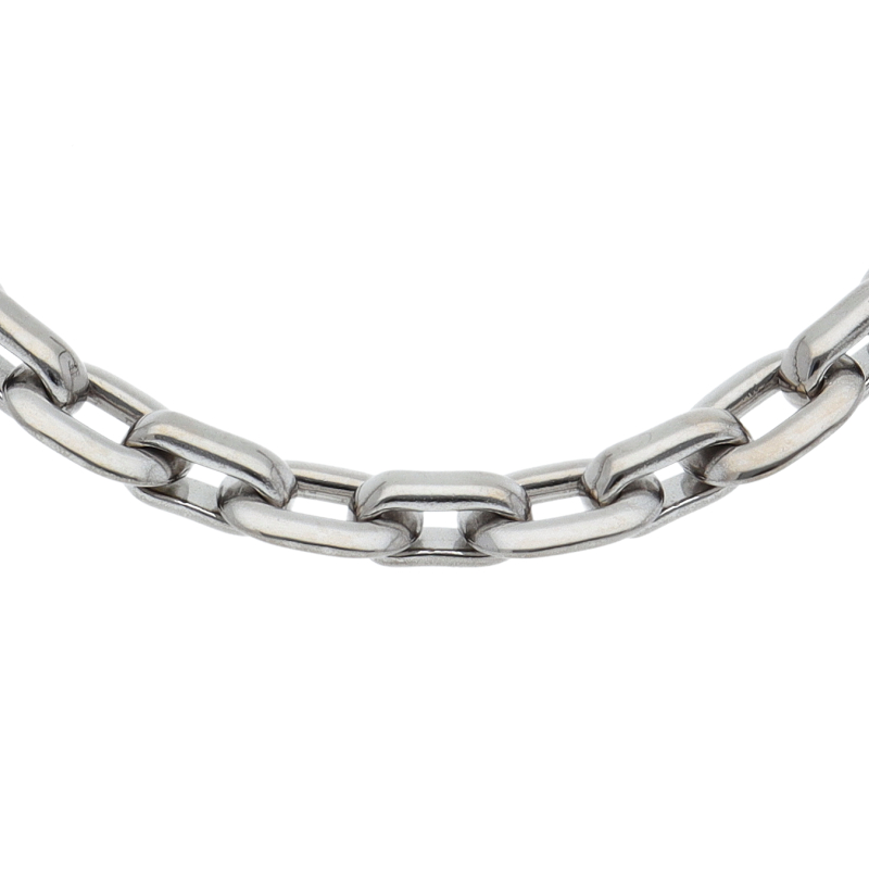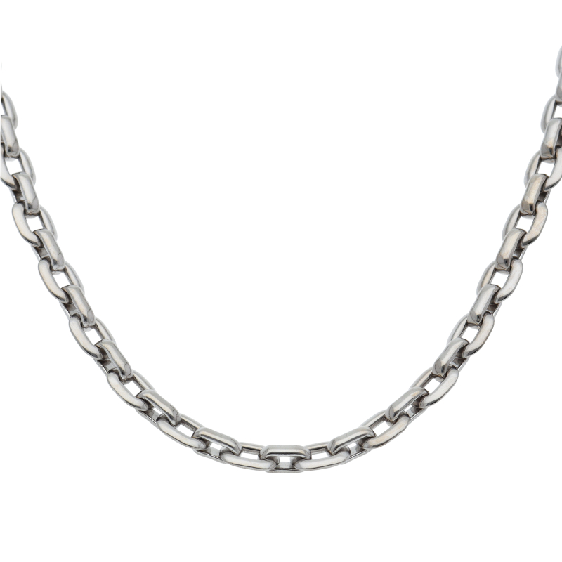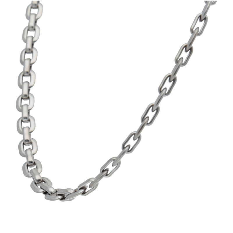USED品。ホワイトゴールド製。シンプルなチェーンネックレスです。ホワイトゴールドの輝きが胸元を上品に演出してくれます。