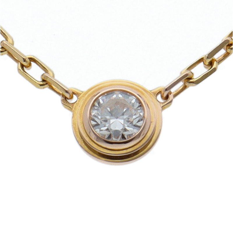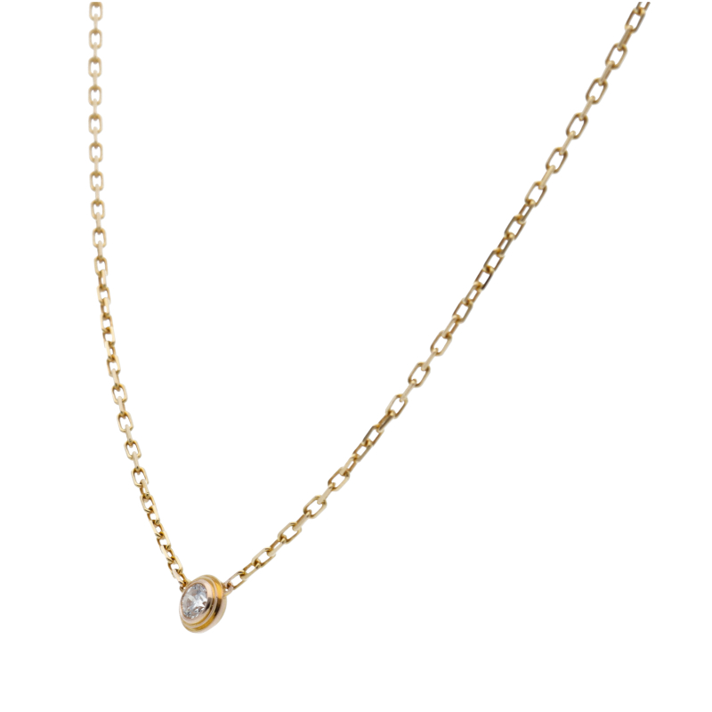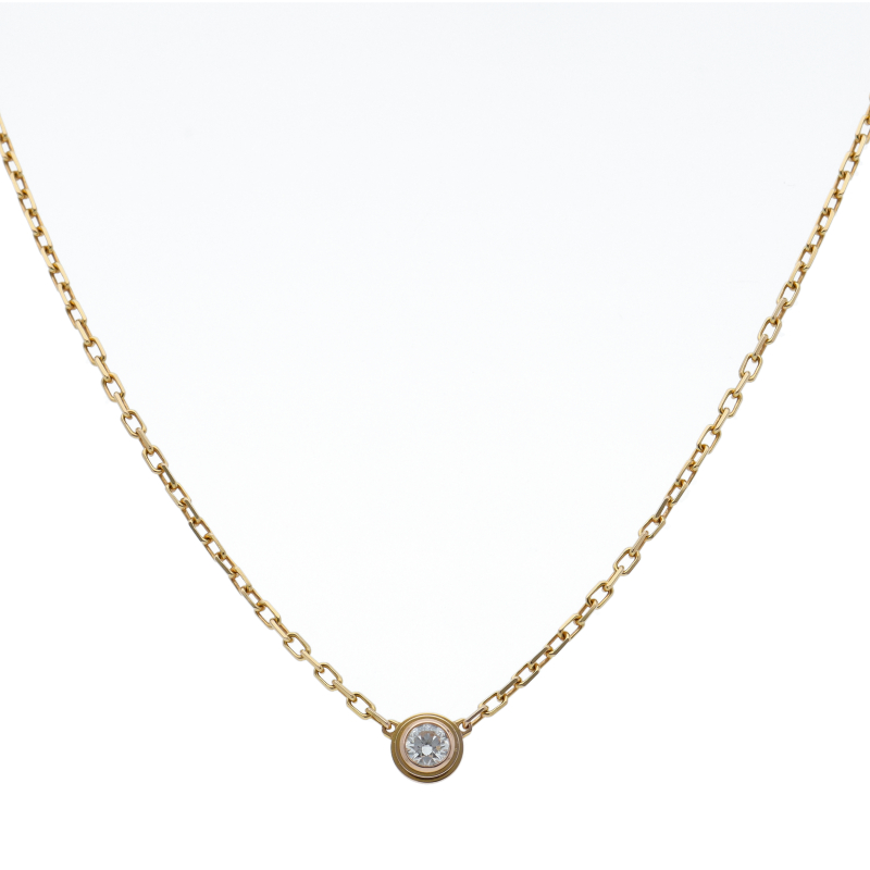 USED品。イエローゴールド製。世界中のセレブに愛される、カルティエのアイテム。現在は『ダムール ネックレス』に名称を変えております。ワンポイントでデザインされたダイヤが、エレガントな存在感を発揮します。