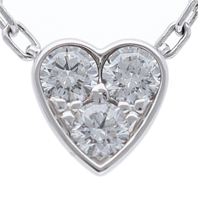 USED品。ホワイトゴールド製。世界中のセレブに愛される、カルティエのアイテム。ハートのフォルムの中にダイヤモンドが3石セッティングしてある豪華なネックレスです。
