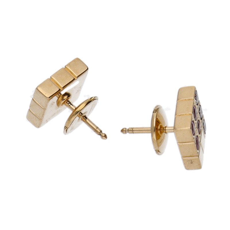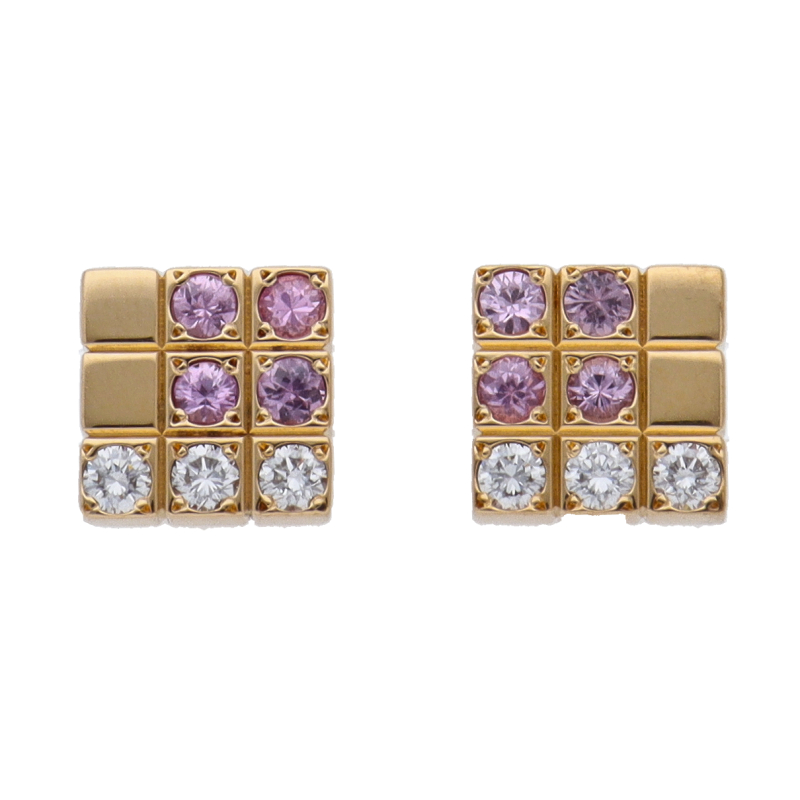 USED品。イエローゴールド製。フランス語で「スパンコール」の意味を持つ「パイエット」ピアス。ピンクサファイヤとダイヤモンドが綺麗なグラデーションのように優しく輝く個性的なデザインです。