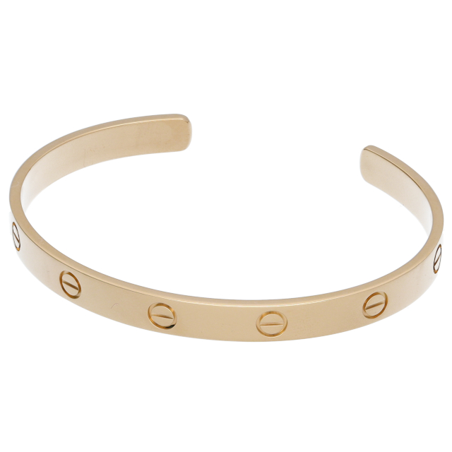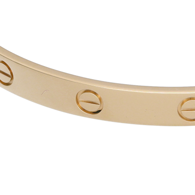 USED品。ピンクゴールド製。ラブコレクションは、情熱的な愛の象徴です。ラブシリーズのビスのモチーフは、『お互いをつなぐ』という意味を持っており、ラブブレスは『ビスで固く結ばれた二人の愛』を表しています。