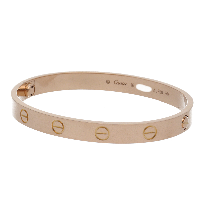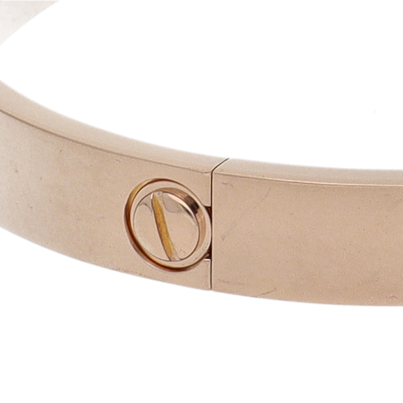USED品。ピンクゴールド製。ラブコレクションは、情熱的な愛の象徴です。ラブシリーズのビスのモチーフは、『お互いをつなぐ』という意味を持っており、ラブブレスは『ビスで固く結ばれた二人の愛』を表しています。