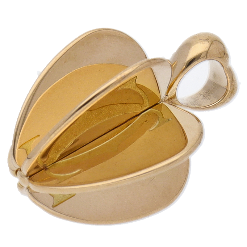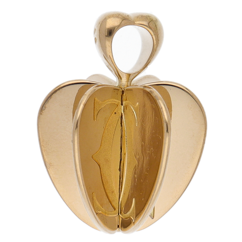 USED品。イエローゴールド製。6枚のプレートが等間隔に重なり、立体的なリンゴの様なデザインとなったトップとなります。どの向きでもカルティエのロゴが見える為、主張がしっかりされています。