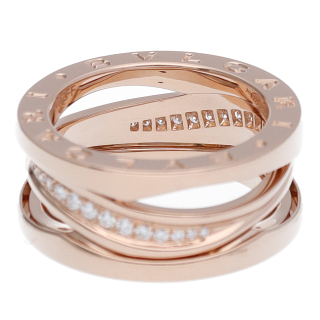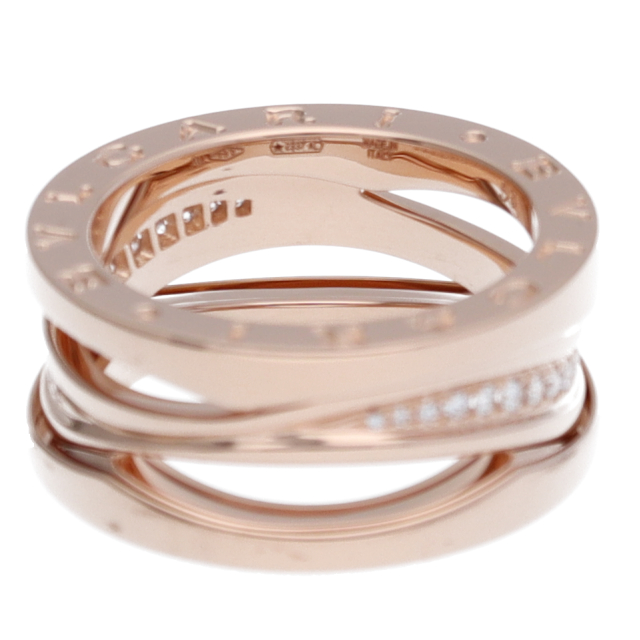 USED品。ピンクゴールド製。ローマの偉大なコロッセオをイメージしたビーゼロワン。ブルガリの人気コレクションです。リングに「BVLGARI BVLGARI」と一目でわかるロゴが刻まれブランドアピールを叶えます。