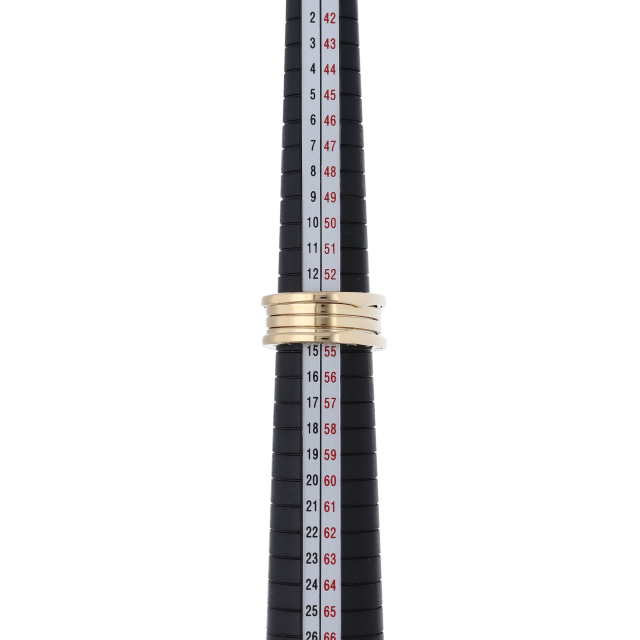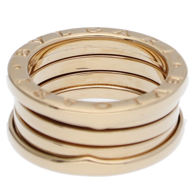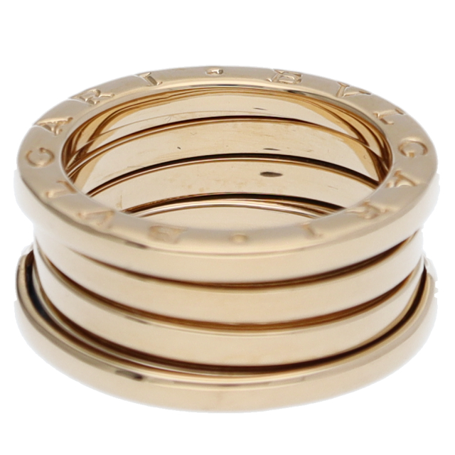 USED品。イエローゴールド製。ローマの偉大なコロッセオをイメージしたビーゼロワン。ブルガリの人気コレクションです。リングに「BVLGARI BVLGARI」と一目でわかるロゴが刻まれブランドアピールを叶えます。