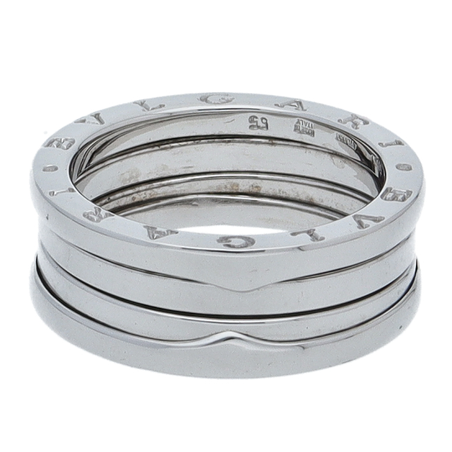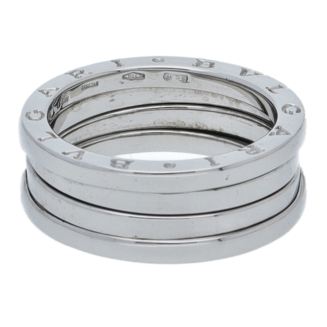 USED品。ホワイトゴールド製。ローマの偉大なコロッセオをイメージしたビーゼロワン。ブルガリの人気コレクションです。リングに「BVLGARI BVLGARI」と一目でわかるロゴが刻まれブランドアピールを叶えます。