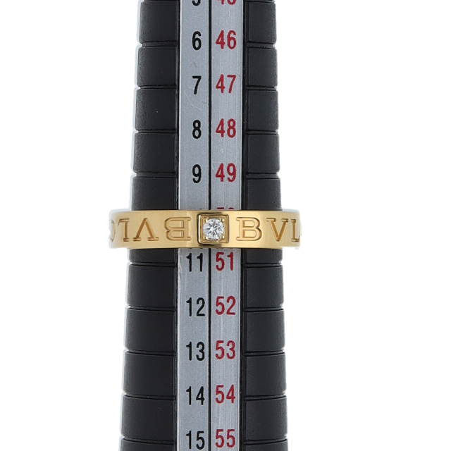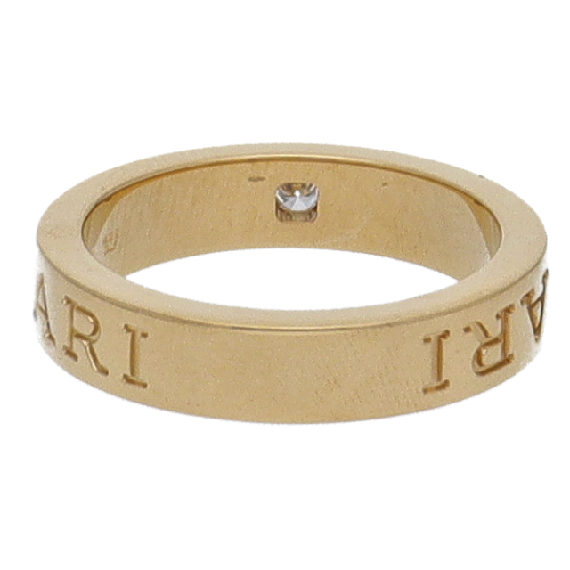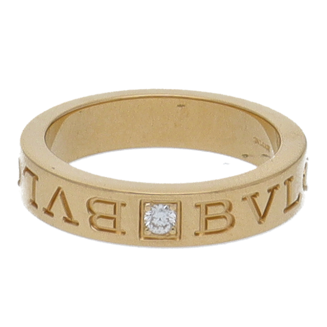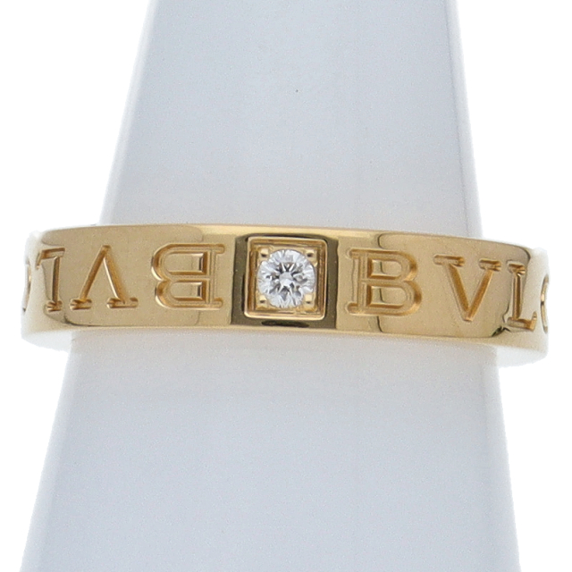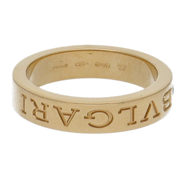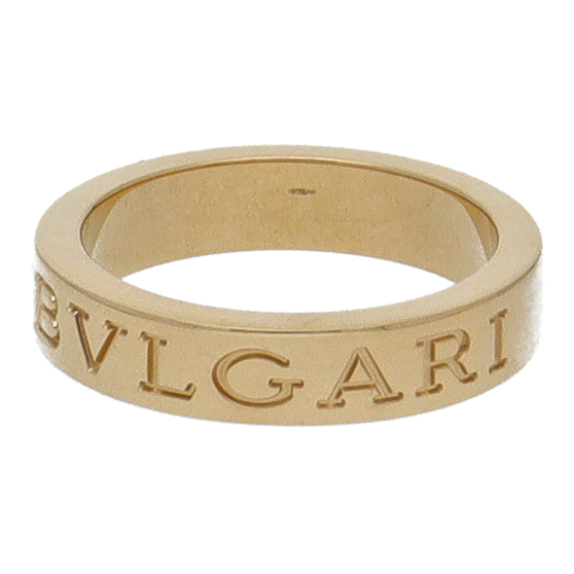 USED品。イエローゴールド製。古代ローマのアンティークコインの文字から生まれた“BVLGARI”ロゴを上下ダブルで刻んだデザイン。ギリシャとローマ文化を取り入れたブルガリ人気のコレクションです。