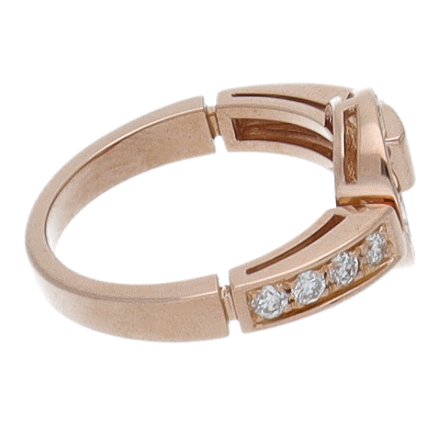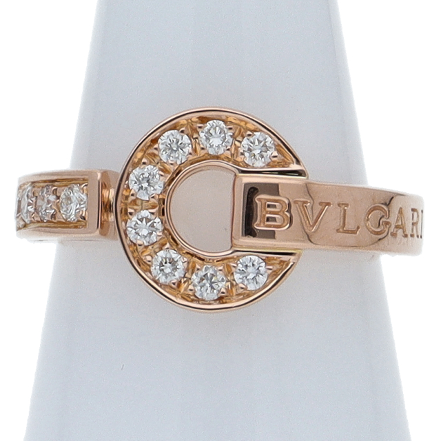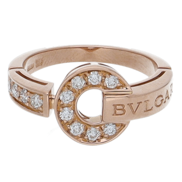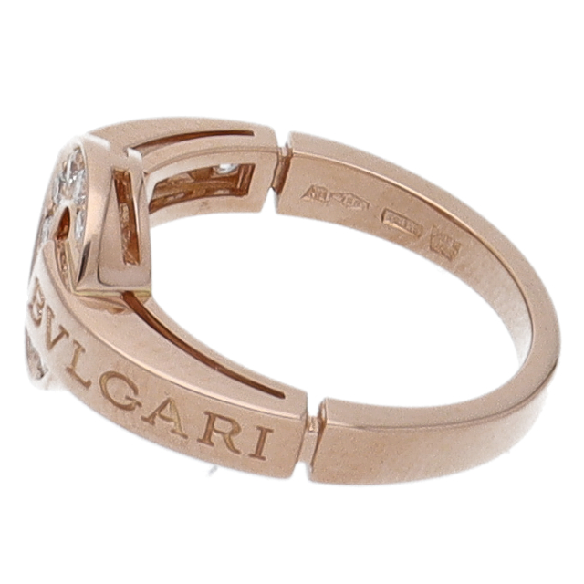 USED品。ピンクゴールド製。古代ローマのアンティークコインの文字から生まれた“BVLGARI”ロゴを上下ダブルで刻んだデザイン。ギリシャとローマ文化を取り入れたブルガリ人気のコレクションです。
