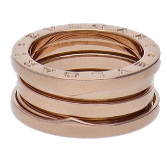USED品。ピンクゴールド製。ローマの偉大なコロッセオをイメージしたビーゼロワン。ブルガリの人気コレクションです。リングに「BVLGARI BVLGARI」と一目でわかるロゴが刻まれブランドアピールを叶えます。