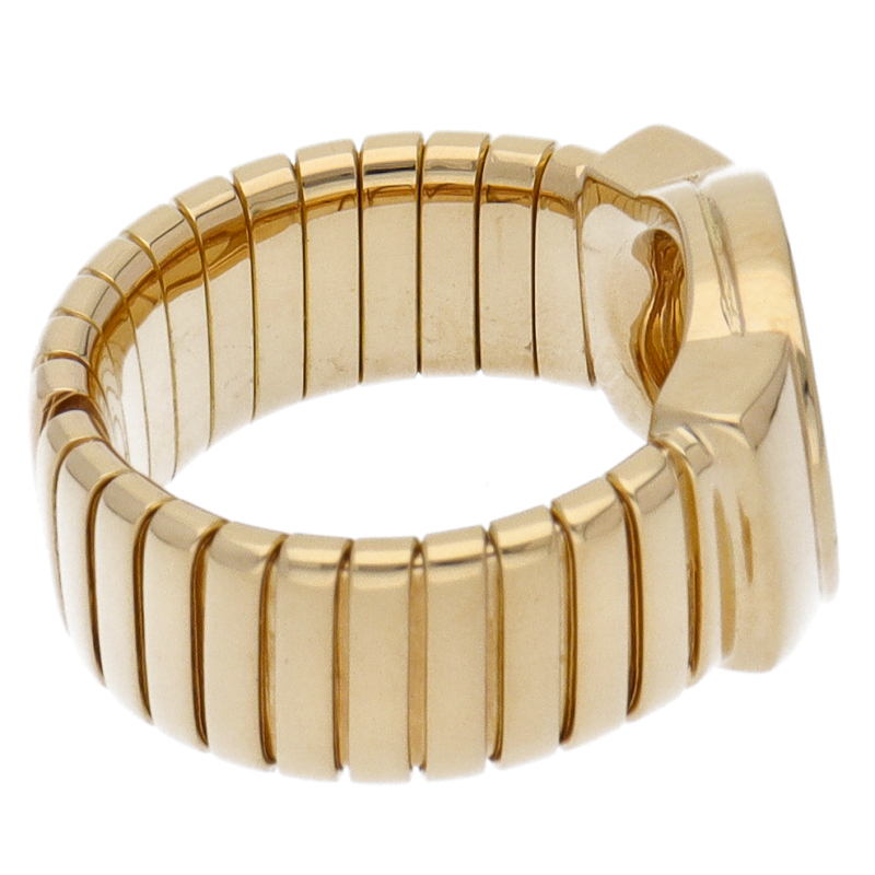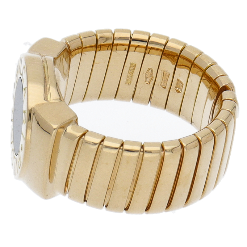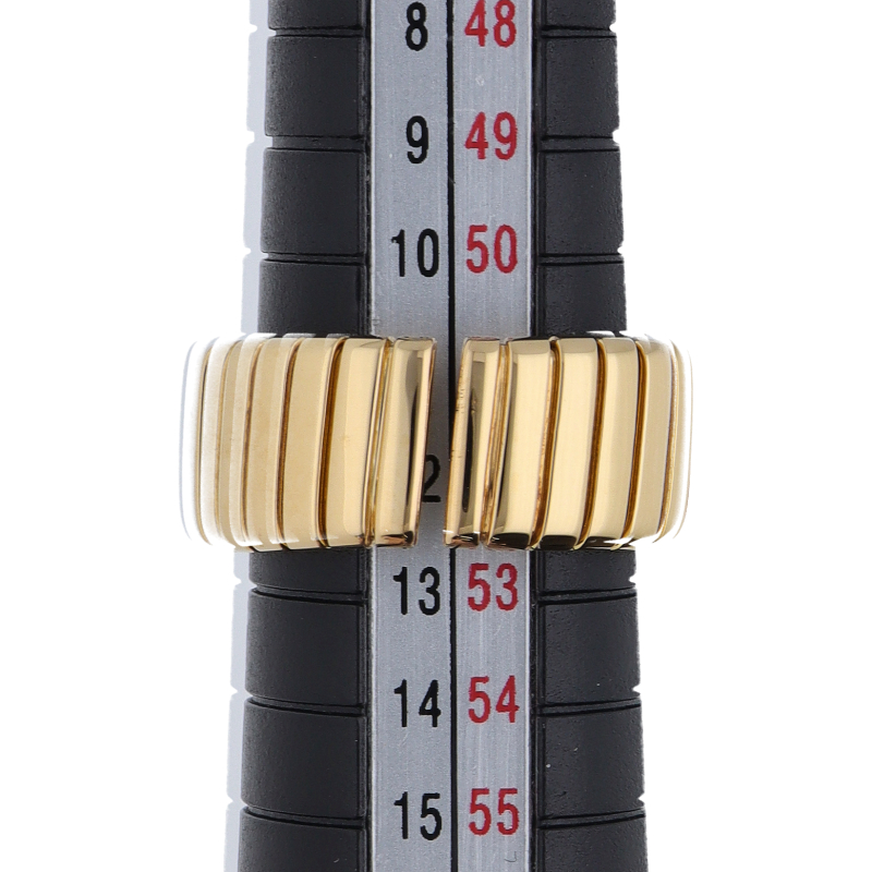 USED品。イエローゴールド製。ブルガリの人気モデル「トゥボガス」リング。トゥボガスとは、イタリア語で、ガスチューブという意味で、指に巻き付く形状のデザインです。