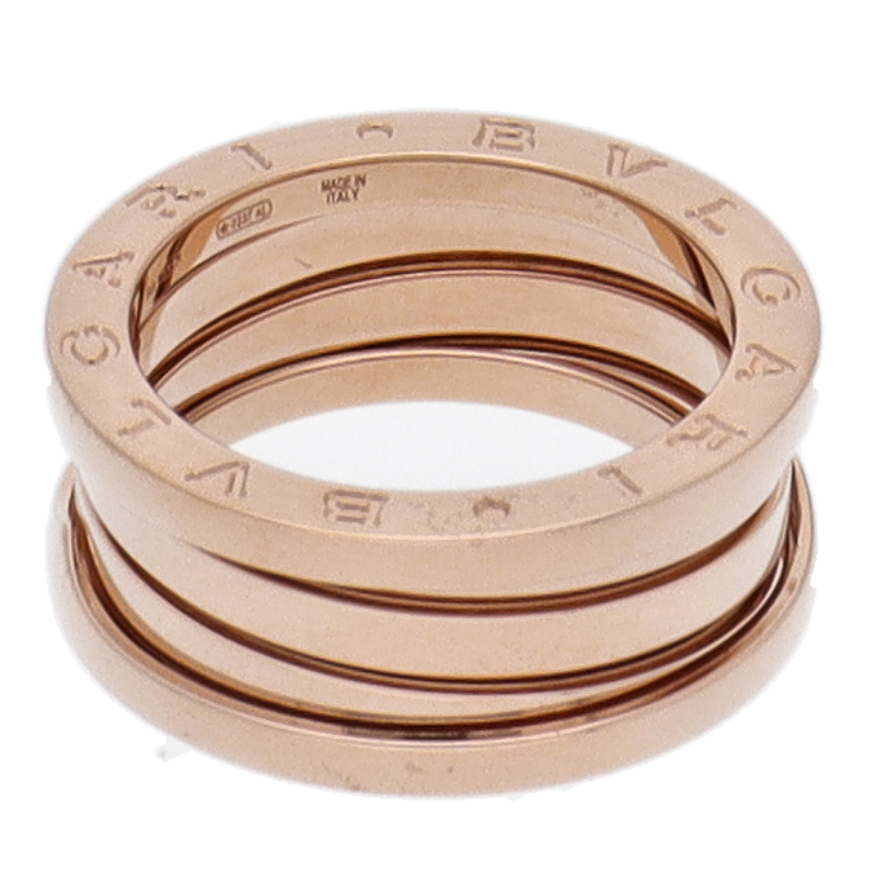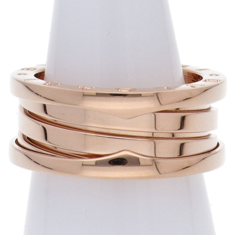 USED品。ピンクゴールド製。ローマの偉大なコロッセオをイメージしたビーゼロワン。ブルガリの人気コレクションです。リングに「BVLGARI BVLGARI」と一目でわかるロゴが刻まれブランドアピールを叶えます。