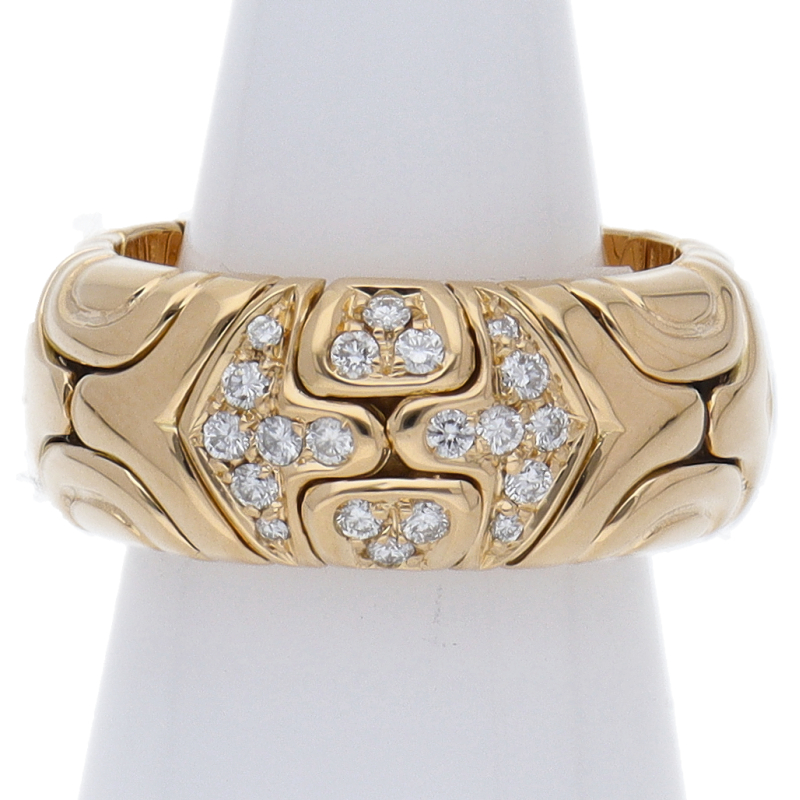 USED品。イエローゴールド製。個性的なデザインのリングです。シーンを問わずお使いいただけます。