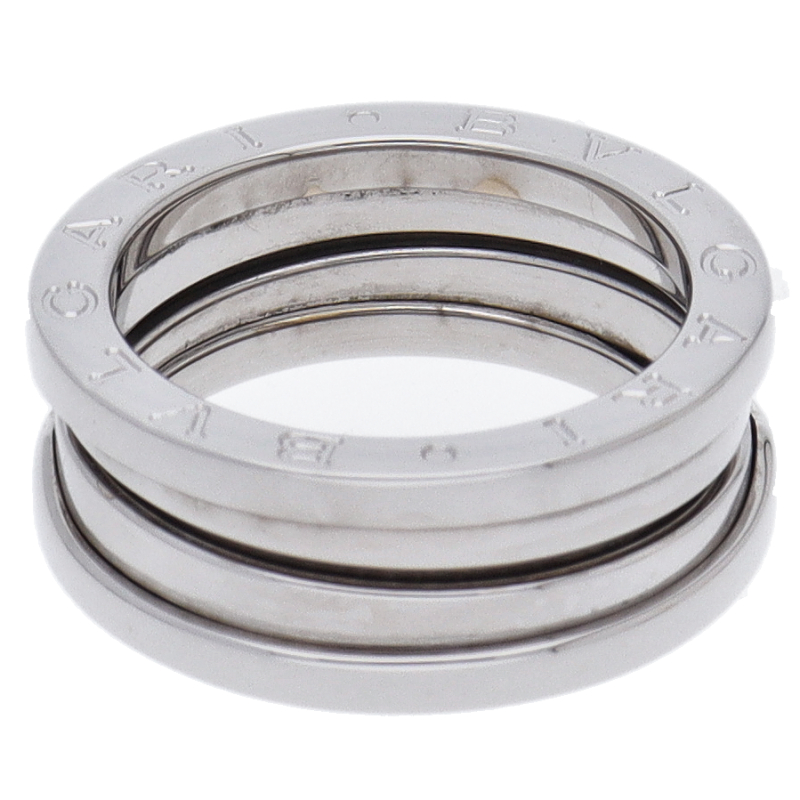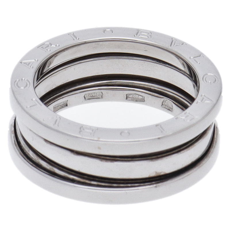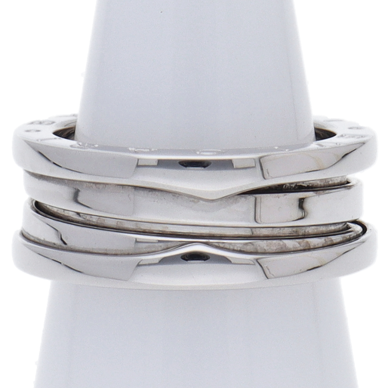 USED品。ホワイトゴールド製。ローマの偉大なコロッセオをイメージしたビーゼロワン。ブルガリの人気コレクションです。リングに「BVLGARI BVLGARI」と一目でわかるロゴが刻まれブランドアピールを叶えます。