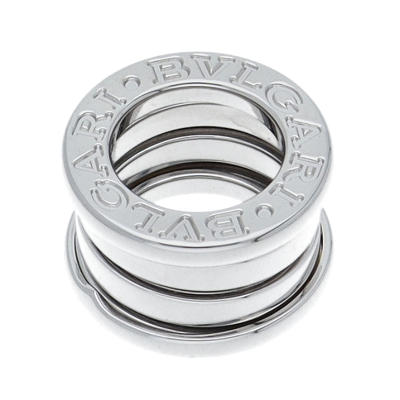 USED品。ホワイトゴールド製。ローマの偉大なコロッセオをイメージしたビーゼロワン。ブルガリの人気コレクションです。リングに「BVLGARI BVLGARI」と一目でわかるロゴが刻まれブランドアピールを叶えます。