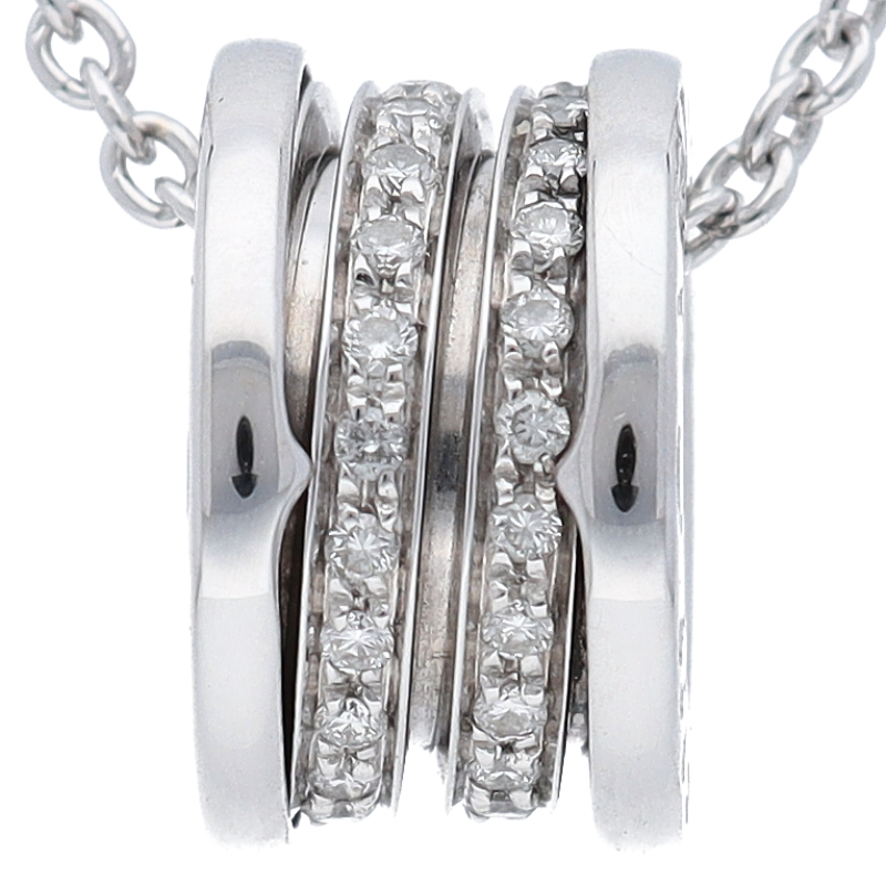 USED品。ホワイトゴールド製。ローマの偉大なコロッセオをイメージしたビーゼロワン。ブルガリの人気コレクションです。リングに「BVLGARI BVLGARI」と一目でわかるロゴが刻まれブランドアピールを叶えます。