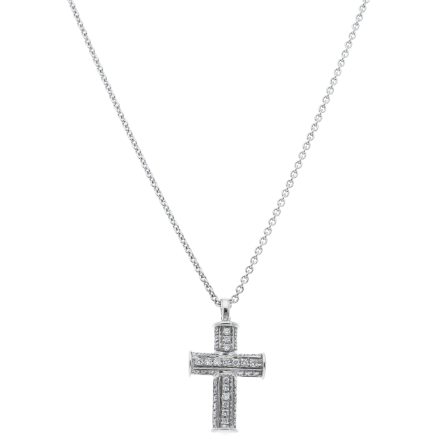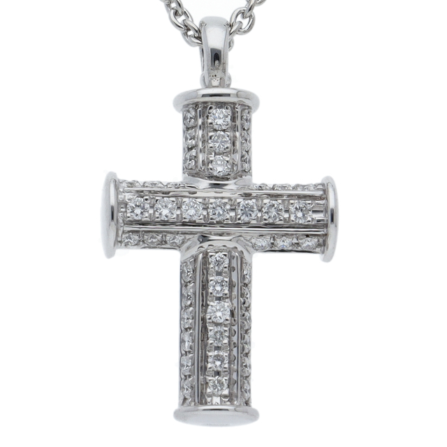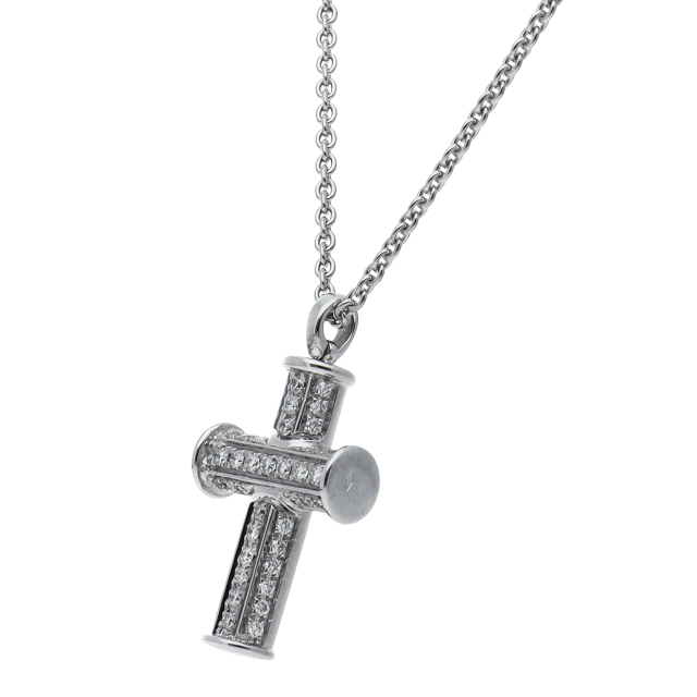 USED品。ホワイトゴールド製。定番のクロスデザインですので飽きずに長くご着用いただけます。贅沢に使用されているパヴェダイヤが美しい輝きを放ちます。
