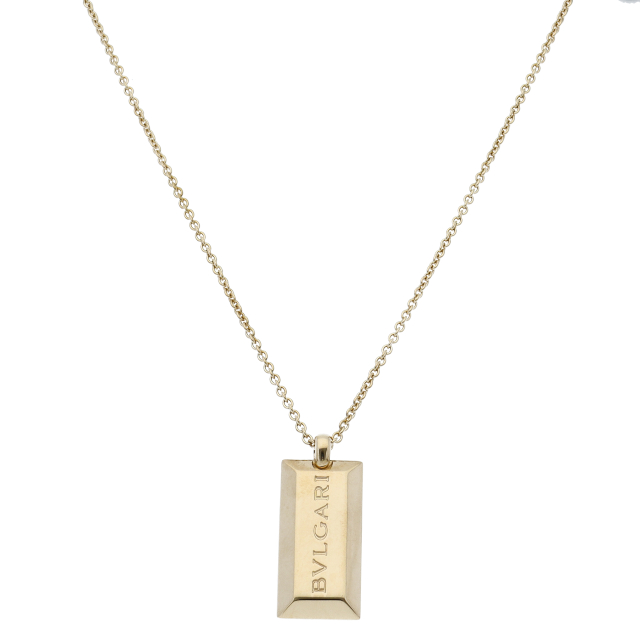USED品。イエローゴールド製。古代ローマのアンティークコインの文字から生まれた“BVLGARI”ロゴを上下ダブルで刻んだデザイン。ギリシャとローマ文化を取り入れたブルガリ人気のコレクションです。