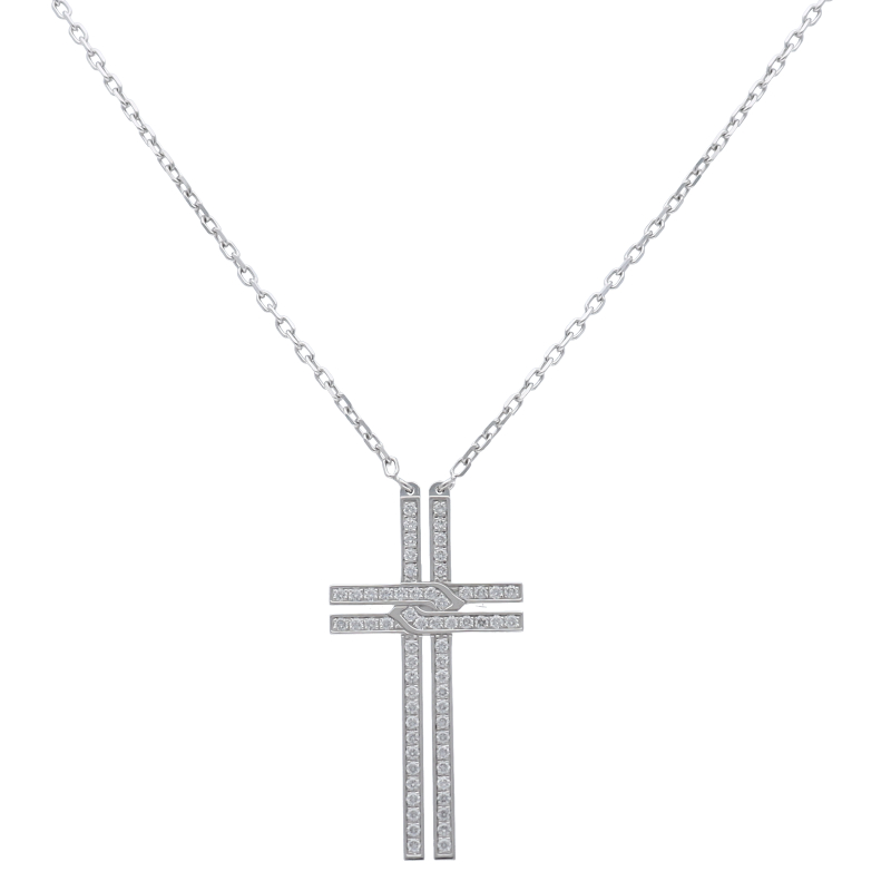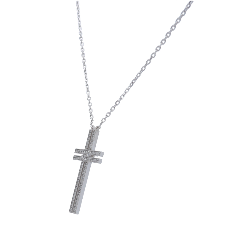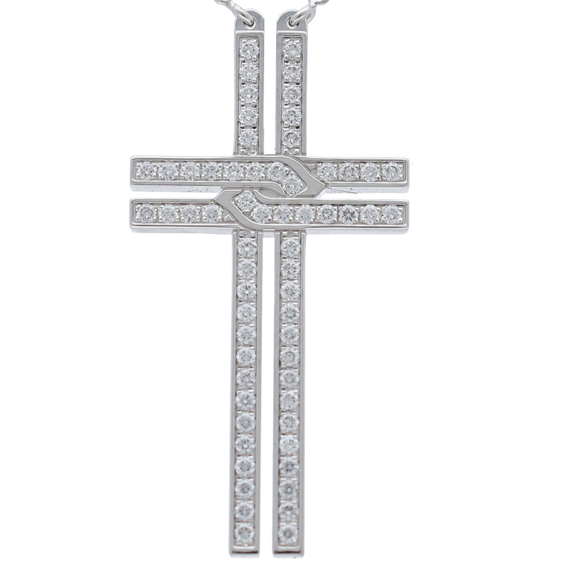 USED品。ホワイトゴールド製。定番のクロスデザインですので飽きずに長くご着用いただけます。贅沢に使用されているパヴェダイヤが美しい輝きを放ちます。