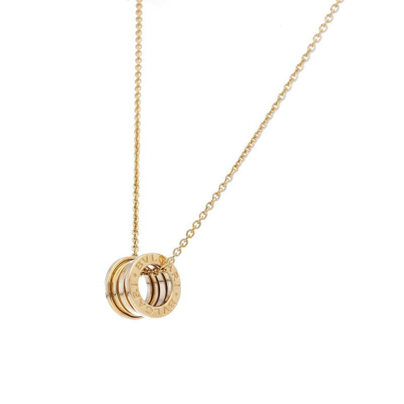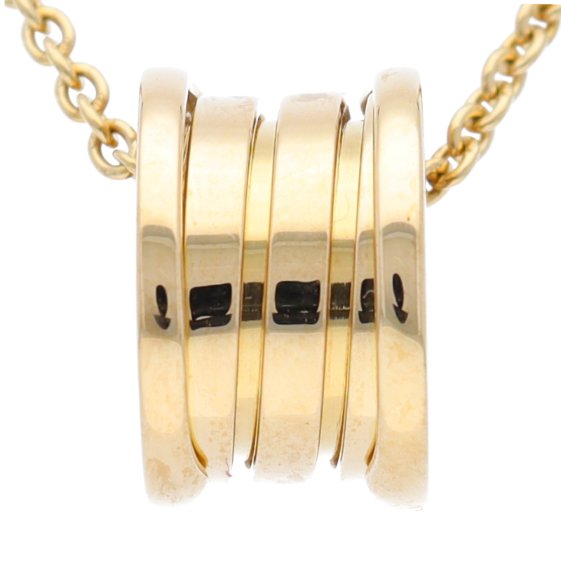 USED品。イエローゴールド製。ローマの偉大なコロッセオをイメージしたビーゼロワン。ブルガリの人気コレクションです。リングに「BVLGARI BVLGARI」と一目でわかるロゴが刻まれブランドアピールを叶えます。