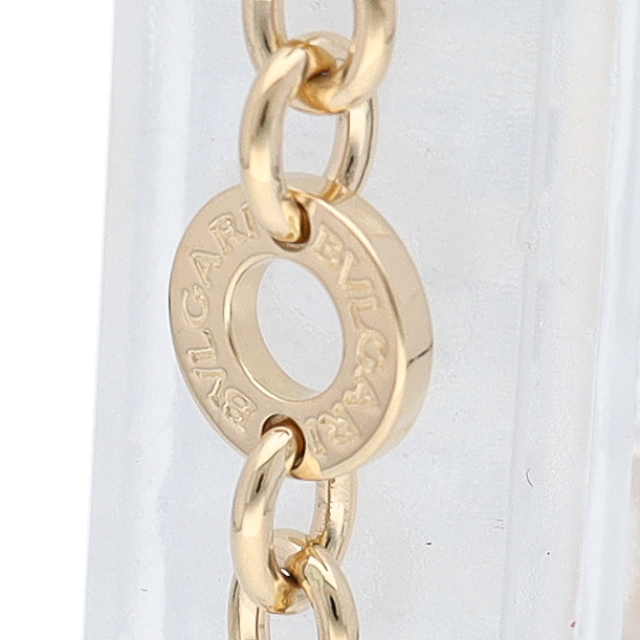 USED品。イエローゴールド製。古代ローマのアンティークコインの文字から生まれた“BVLGARI”ロゴを上下ダブルで刻んだデザイン。ギリシャとローマ文化を取り入れたブルガリ人気のコレクションです。