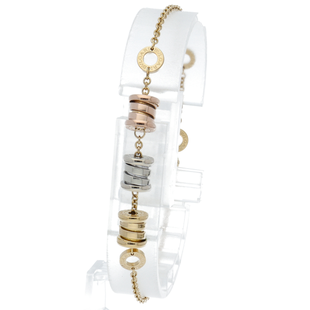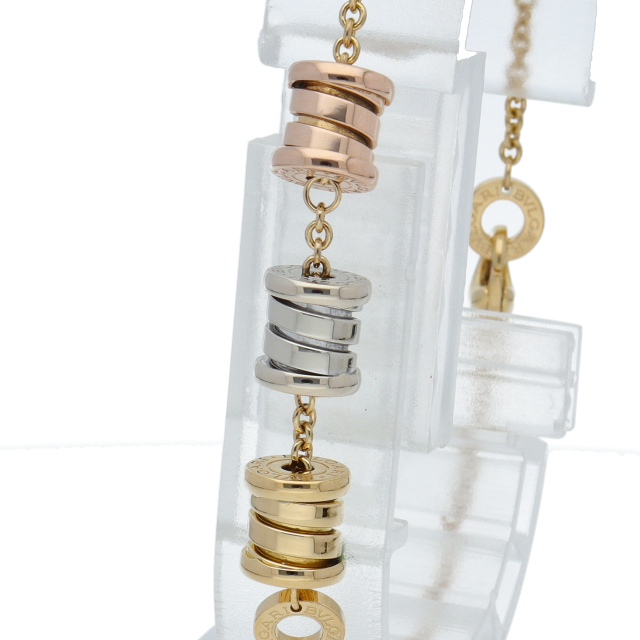 USED品。3カラー製。ロングセラーの定番シリーズ。3種類のゴールドをあしらったチェーンブレスレットです。