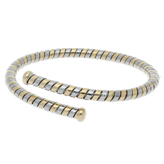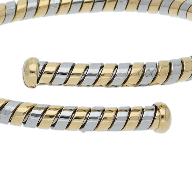 USED品。製。ブルガリの人気モデル「トゥボガス」ブレスレット。トゥボガスとは、イタリア語で、ガスチューブという意味で、腕に巻き付く形状のデザインです。