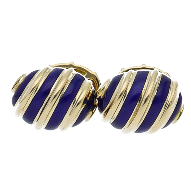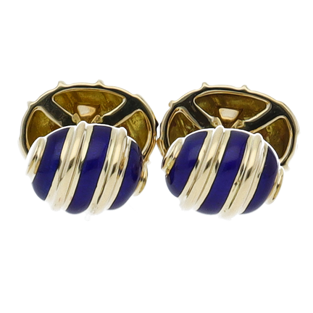 USED品。イエローゴールド製。ティファニーのカフスとなります。ワンポイントのオシャレに最適です。
