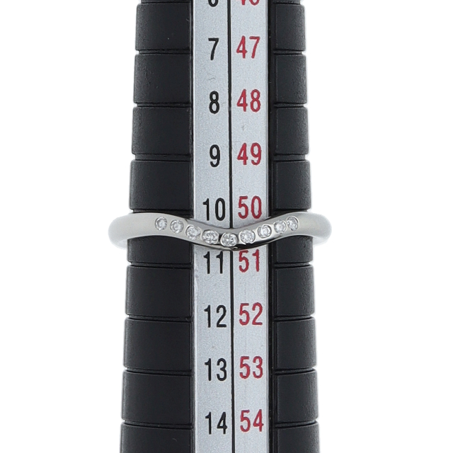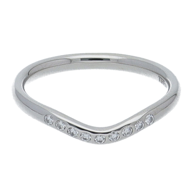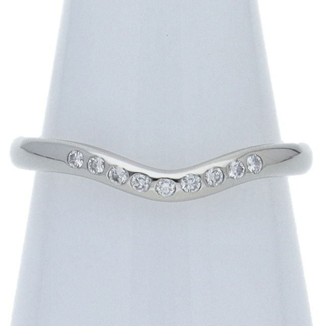 USED品。プラチナ製。シンプルなデザインのバンドリング。9石のダイヤがアクセントとなっています。
