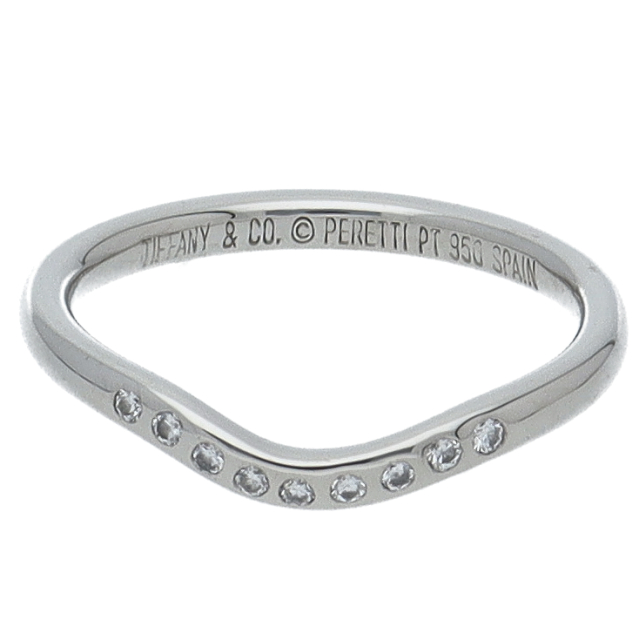 USED品。プラチナ製。ゆるやかなカーブが特徴的のリングです。シンプル過ぎず、個性を生かせるデザインになっています。