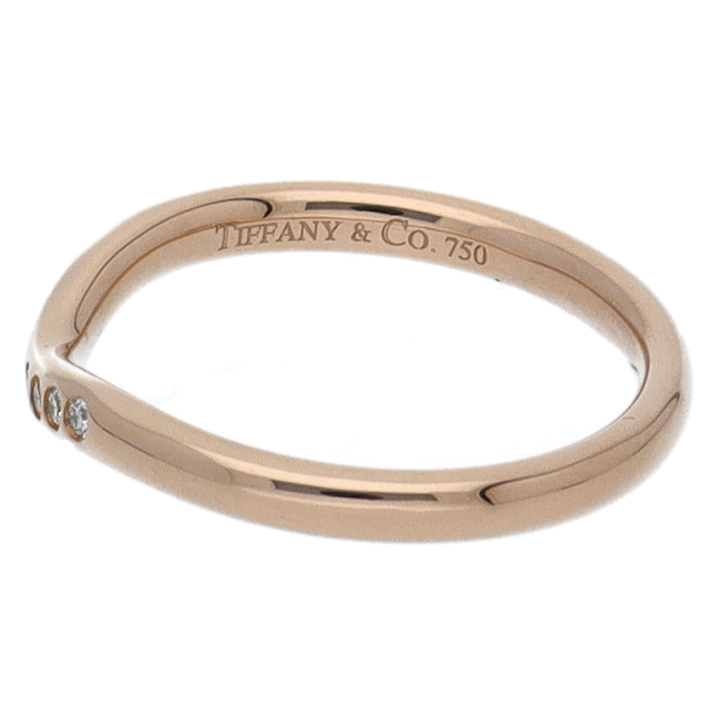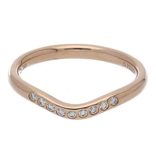 USED品。ピンクゴールド製。ゆるやかなカーブが特徴的のリングです。シンプル過ぎず、個性を生かせるデザインになっています。9石入っているダイヤが煌きます。