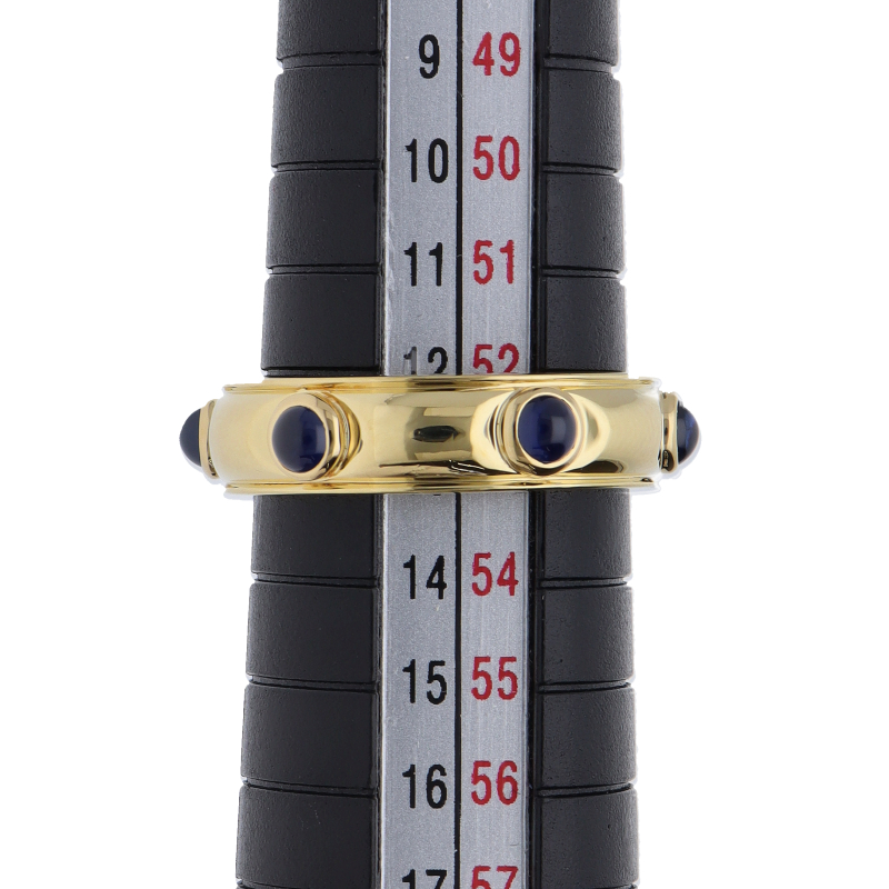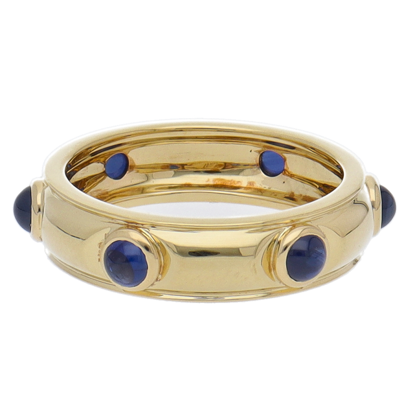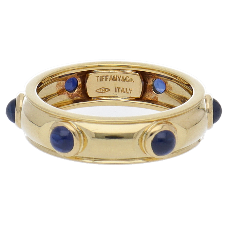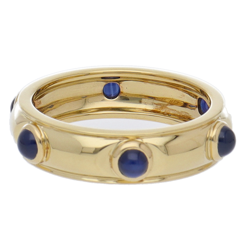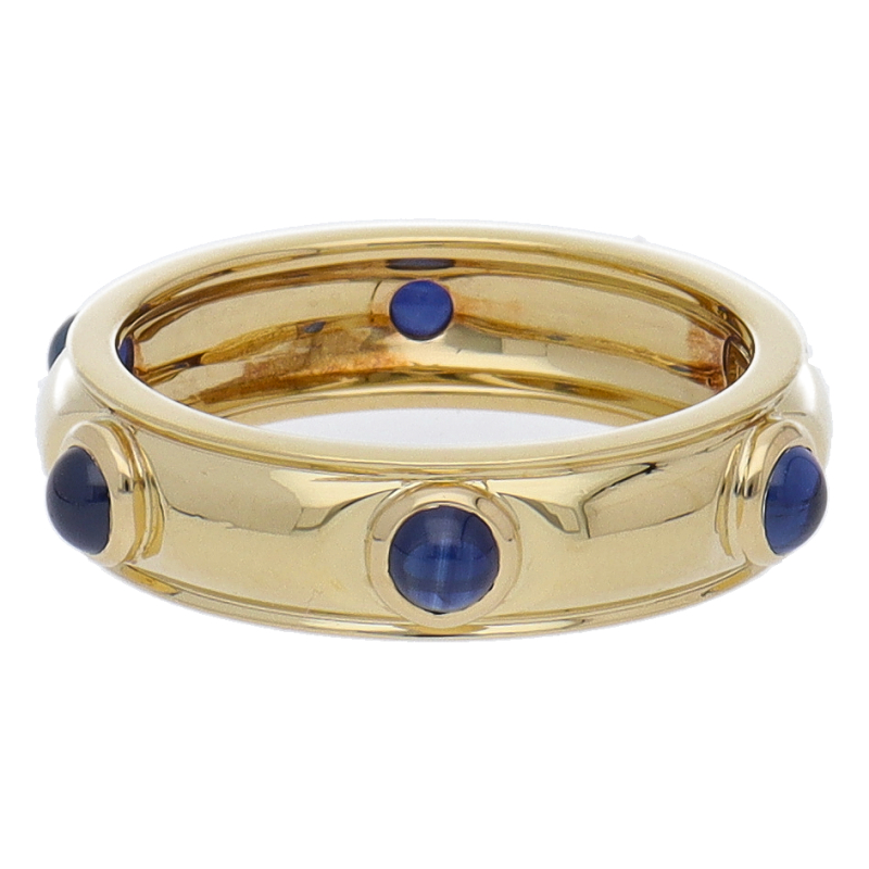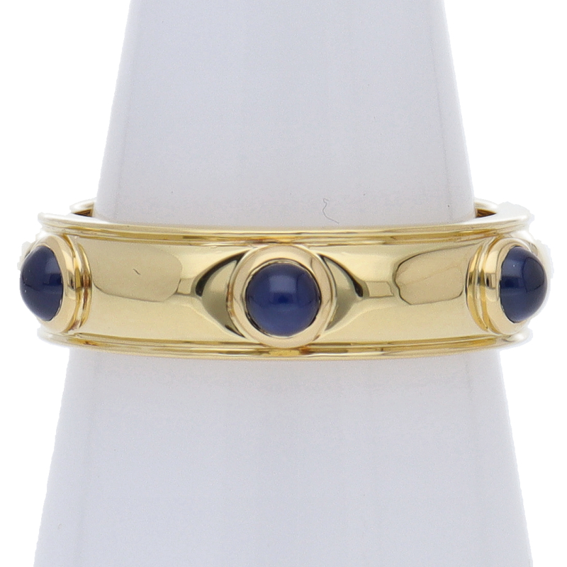USED品。イエローゴールド製。サファイアが6石配されたリング。シンプルな中にも上品な雰囲気が漂います。