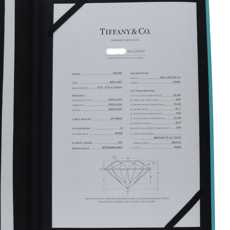 USED品。プラチナ製。ティファニーの高グレーのダイヤモンドが上品さの中にもエレガントさを感じさせます。上質なダイヤがきらめき、指元をより華やかにしてくれます。