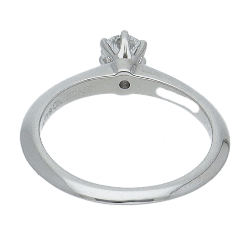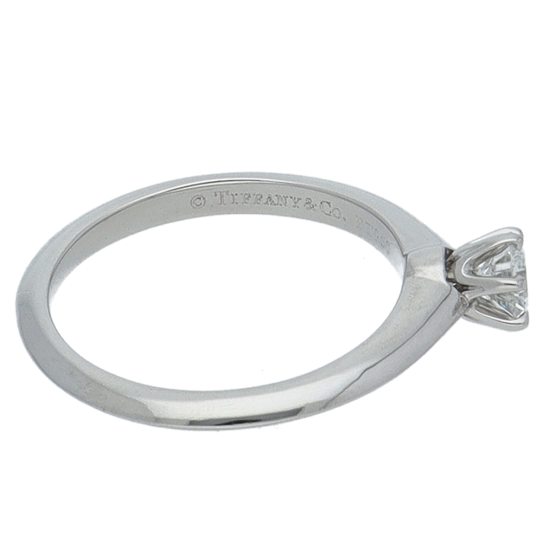 USED品。プラチナ製。ティファニーの高グレーのダイヤモンドが上品さの中にもエレガントさを感じさせます。上質なダイヤがきらめき、指元をより華やかにしてくれます。