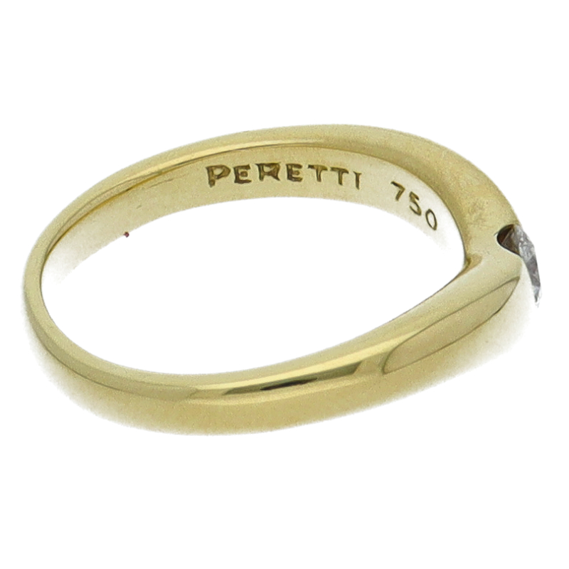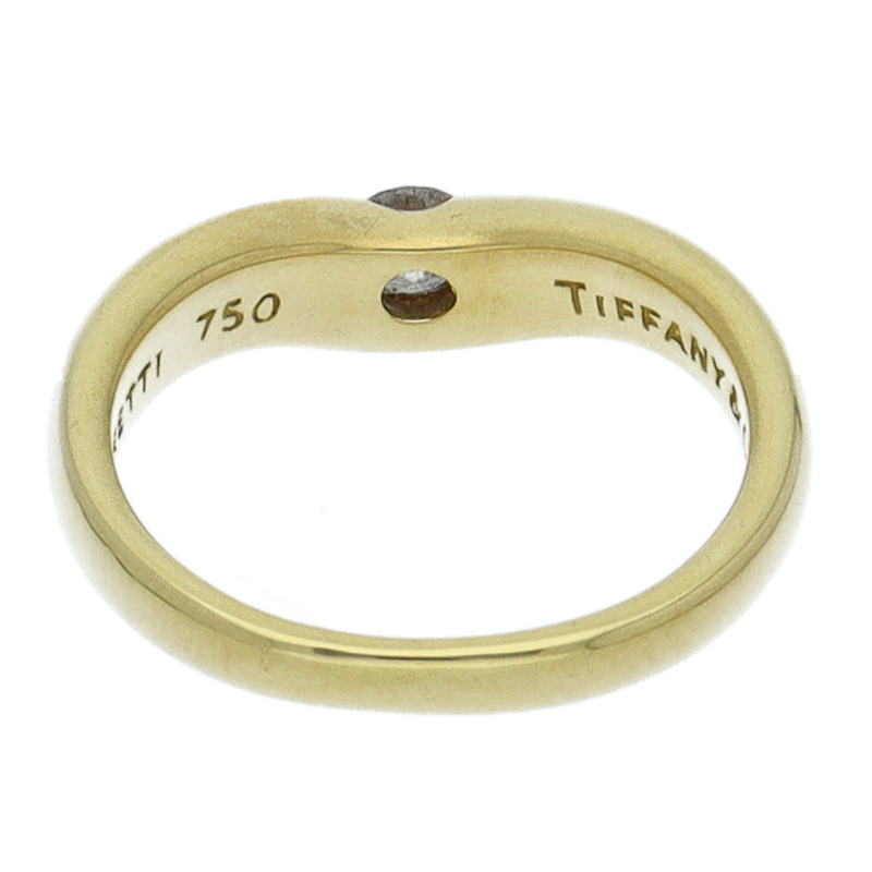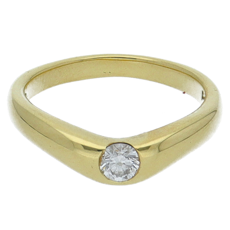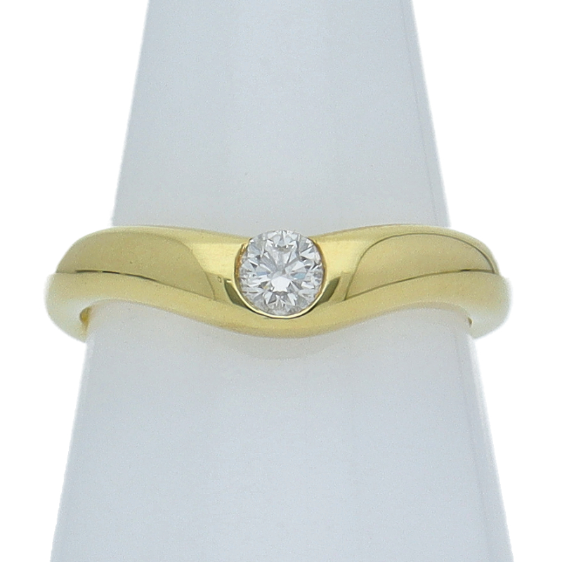 USED品。イエローゴールド製。センターに施された1粒のダイヤモンドが美しく輝きます。飽きのこないシンプルなデザインでファッションやシーンを選ばずお使いいただけます。
