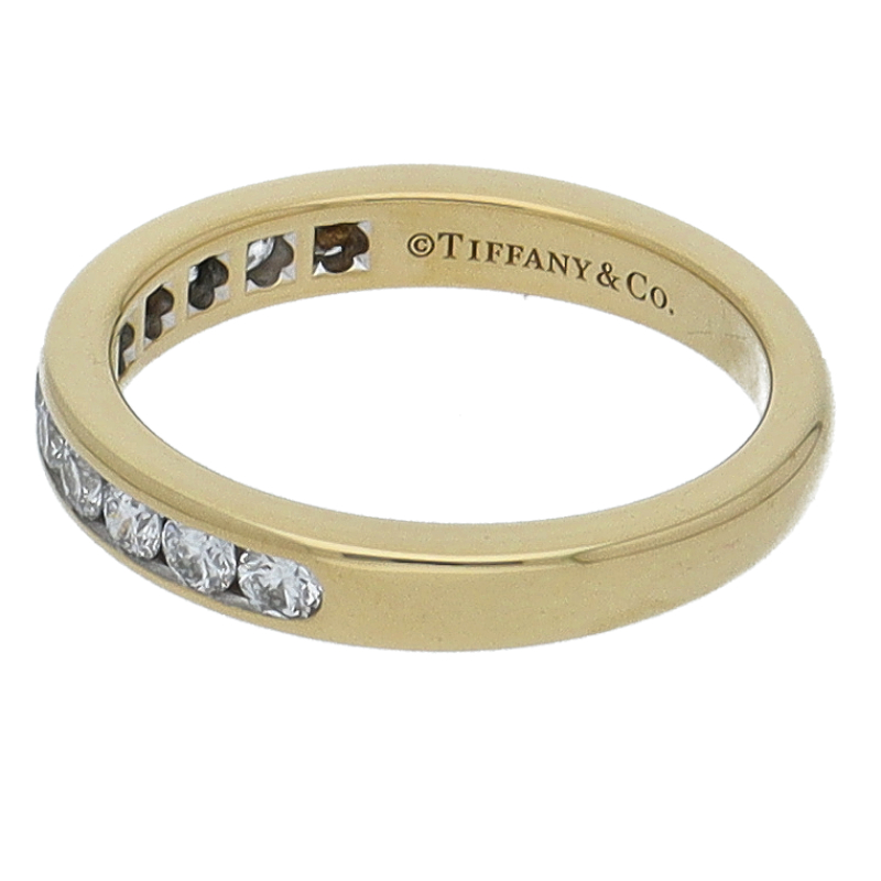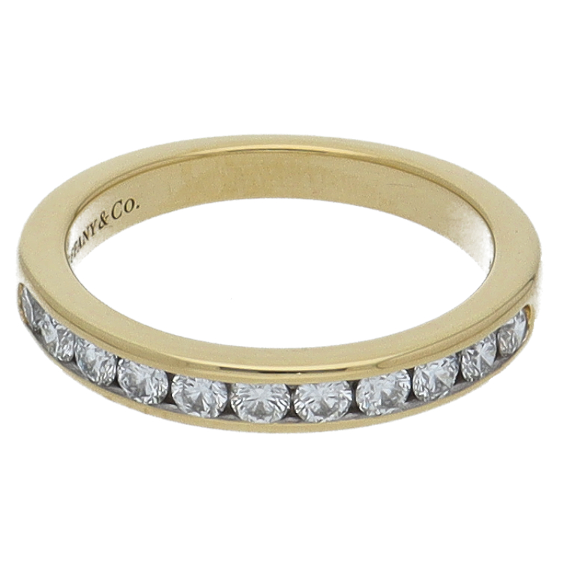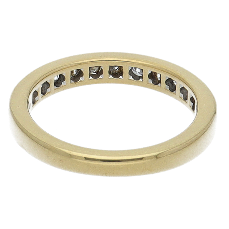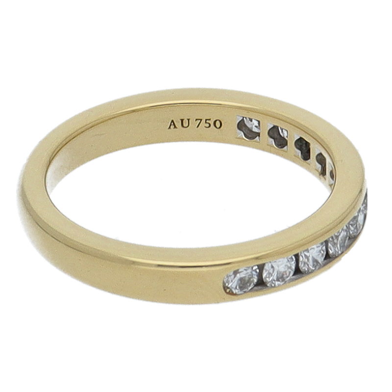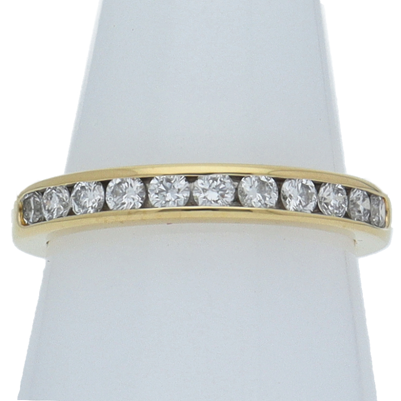 USED品。イエローゴールド。シンプル過ぎず、個性を生かせるデザインになっています。11石入っているダイヤが煌きます。