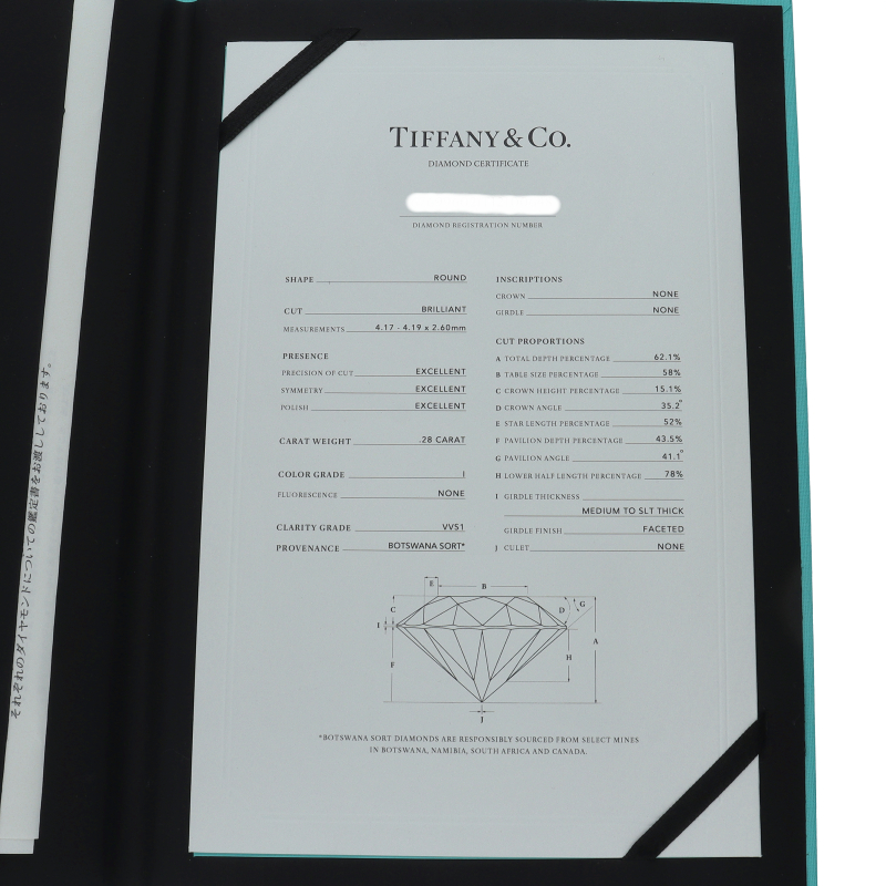 未使用に近い美品。プラチナ製。カラー:I クラリティ:VVS1 カット:3EX