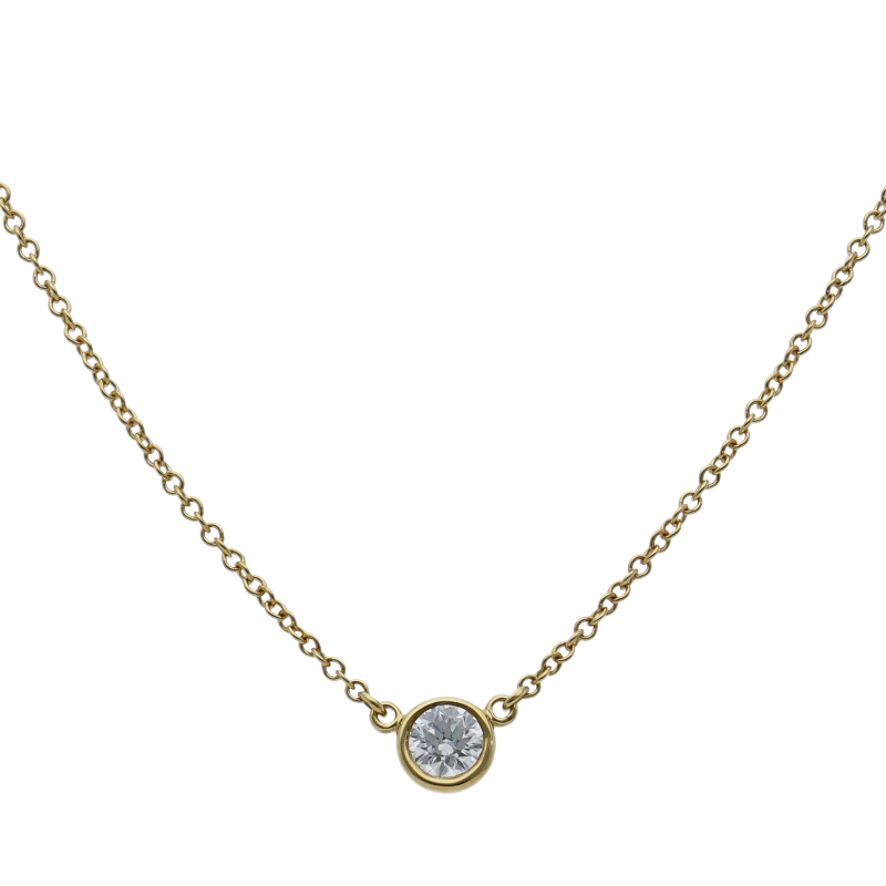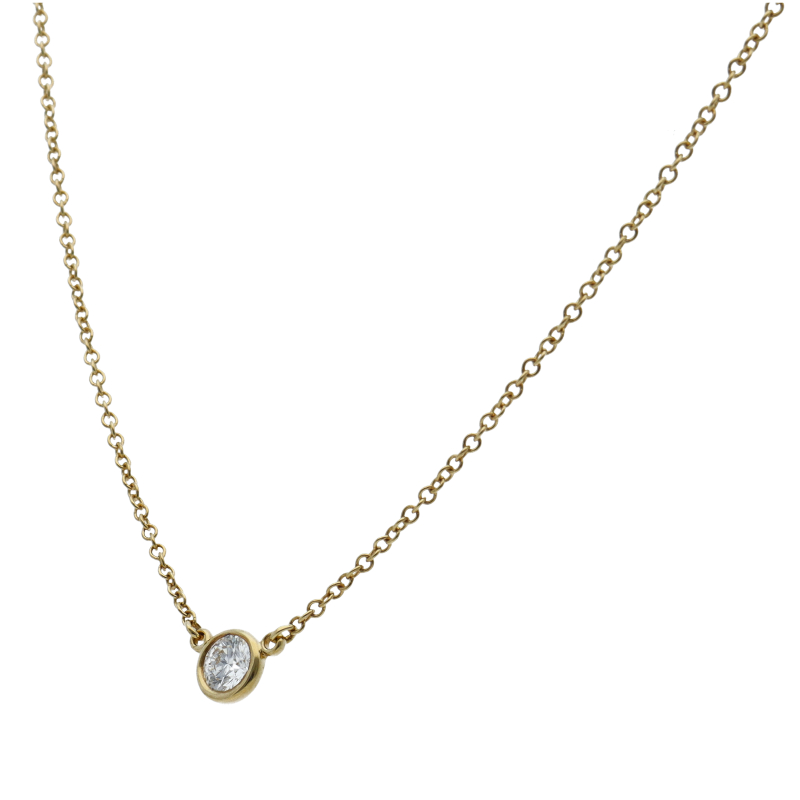 USED品。イエローゴールド製。シンプルな輝きが上品な人気のネックレスです。場面、ファッションを選ばずご使用いただけます。 ※石目は刻印が無い為、枠幅から推測した概算石目となります。