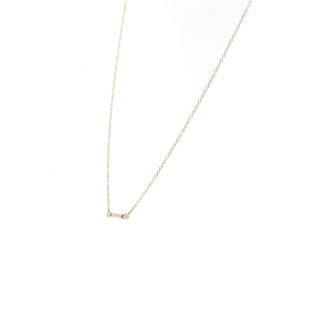 USED品。イエローゴールド製。フェミニンで繊細。洗練された優雅な力強さと落ち着いた自信を感じさせます。ダイヤモンドがまばゆい輝きを放つシンプルなデザインのペンダントです。