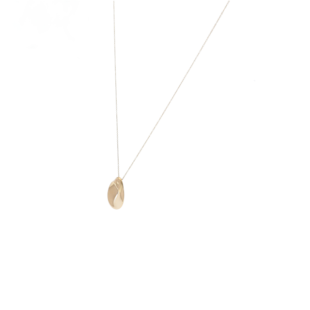 USED品。イエローゴールド製。女性らしいエレガントな曲線ラインに、凹凸を加えた独特なフォルムが魅力的なネックレスです。