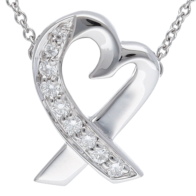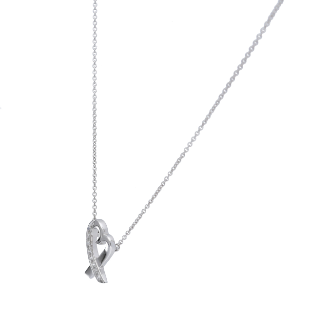 USED品。ホワイトゴールド製。パロマピカソデザインのハートモチーフのネックレス。小ぶりのサイズが可愛らしくダイヤモンドがゴージャスな印象です。